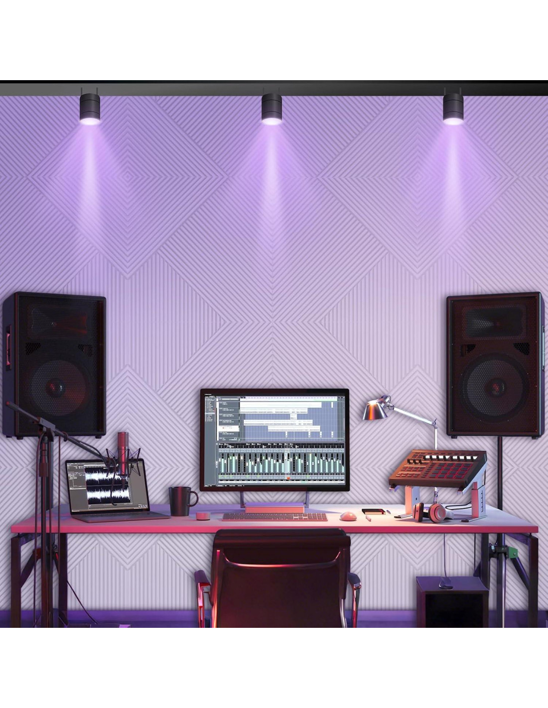 - Paneles Absorbentes de Sonido Blancos (6-Pack): 32kg/m de poliéster de alta calidad (ligero, duradero) reduce 40% la reverberación en habitaciones de 20m (probado). 6 paneles (60x60cm cada uno) cubren ~2.2m. Las ranuras lineales atrapan el sonido, iluminan el espacio mientras aseguran llamadas claras y películas sin eco.