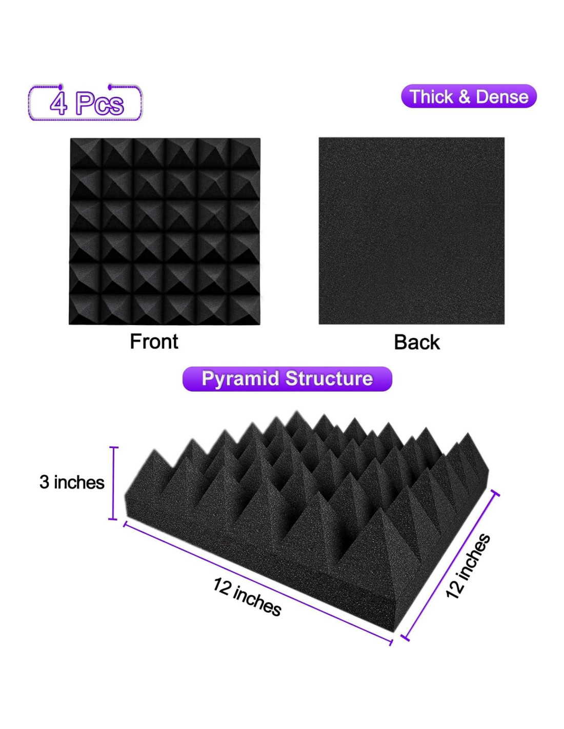 - ESPECIFICACIONES: Tamaño - 30.48 X 30.48 X 7.62 cm, paquete de 4; Cobertura - 0.37 metros cuadrados; Peso - 0.05 kg por panel; Material - Poliuretano grueso y de alta densidad; Diseño - La estructura en forma de pirámide mejora tanto la funcionalidad como la estética