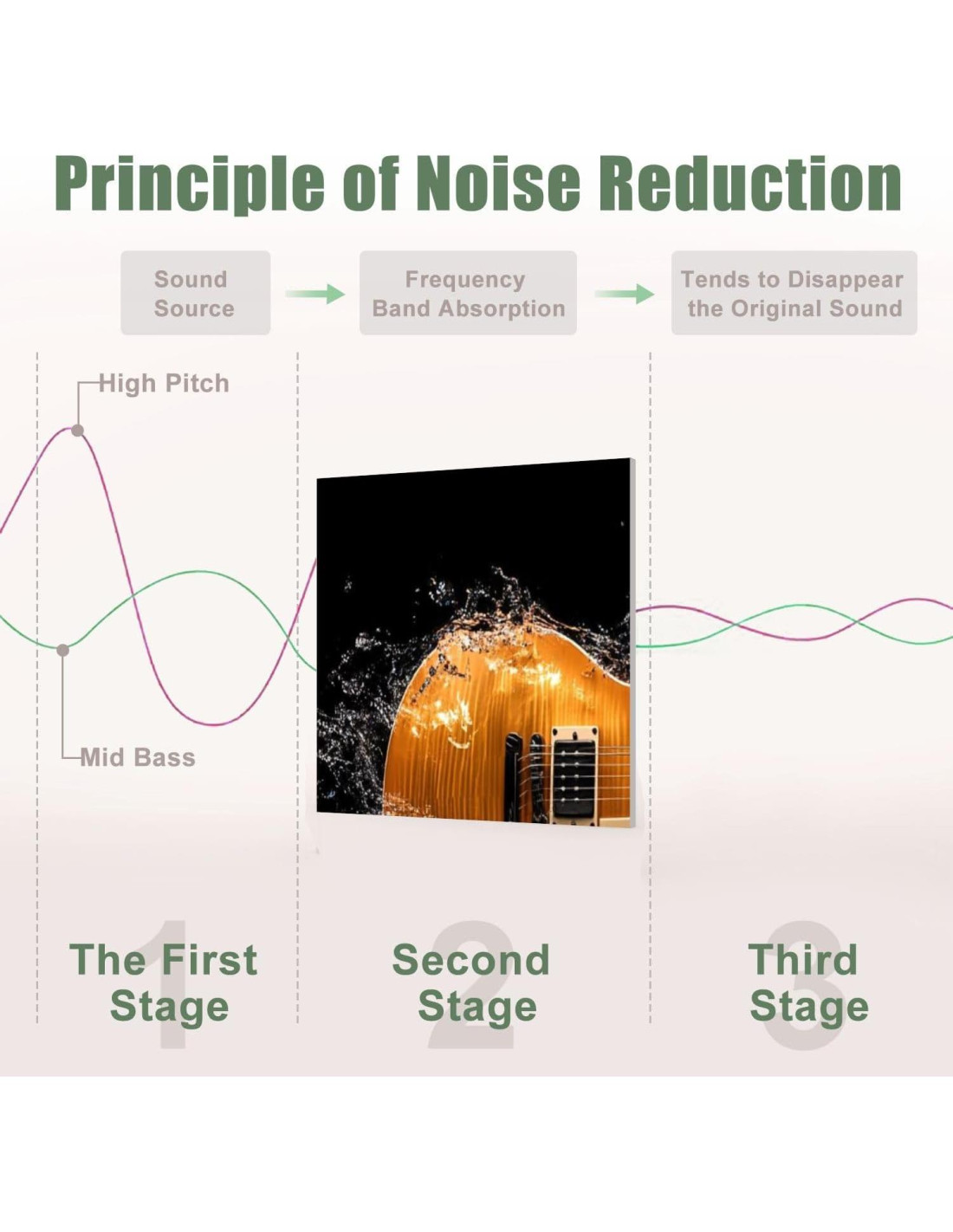 - Materiales Seleccionados: Incluye 6 piezas, cada pieza mide 24"x24" tamaño total 48"x72". Los paneles acústicos Art están hechos de fibra de poliéster, que es de alta densidad, retardante de llama y liviano. Es superior a la espuma absorbente de sonido en todos los aspectos y es amigable para adultos, niños y mascotas.
