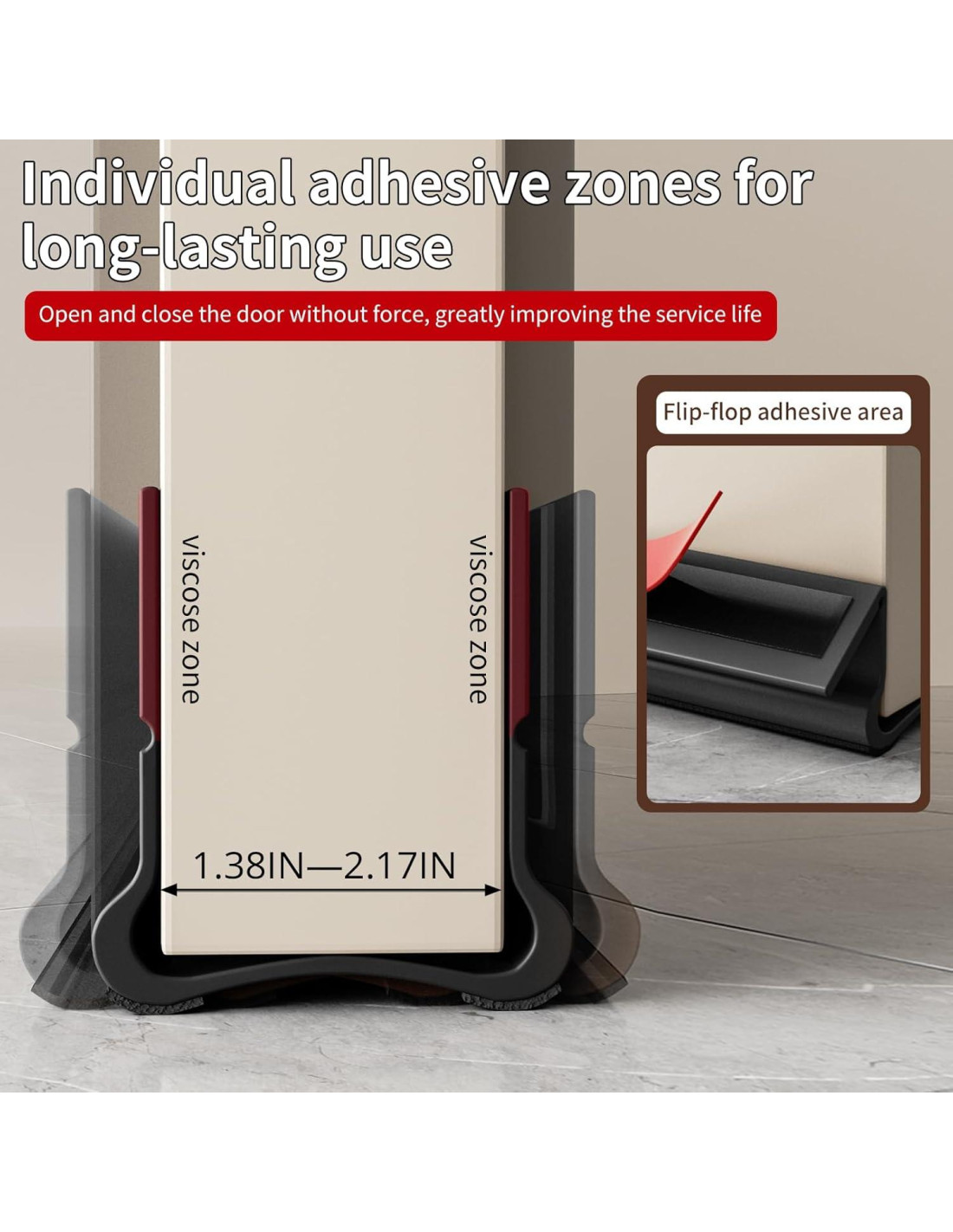 - [Uso flexible] El tapón de corrientes de aire para puertas es adecuado para suelos interiores lisos. Después de abrir ambos lados, empújalo directamente a lo largo del espacio en la parte inferior de la puerta, y luego corta el exceso, lo que lo hace muy fácil de instalar. (Si el espacio de la puerta es grande, puedes usar el pegamento auxiliar que viene con él. Las pegatinas proporcionadas pueden despegarse de algunas puertas viejas, por favor úsalas con precaución.)