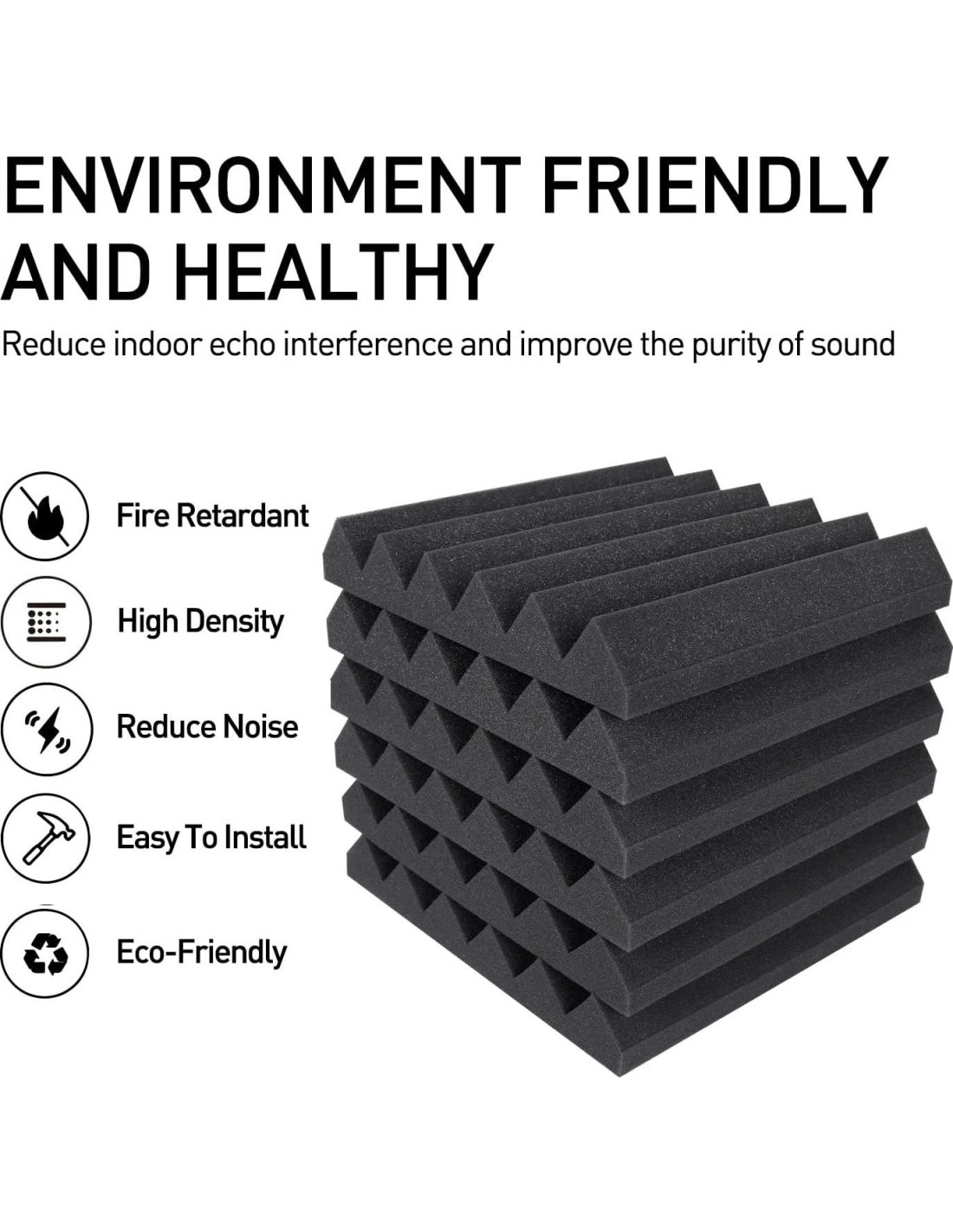 - - Fácil de Instalar: Nuestro panel de espuma acústica se puede usar como cubierta acústica para paredes, techos y puertas. Una cuña necesita 5 piezas de cinta. Cada losa es de 1 pie cuadrado (0.09 m) de cuña acústica de 2 pulgadas (5.08 cm) de grosor.