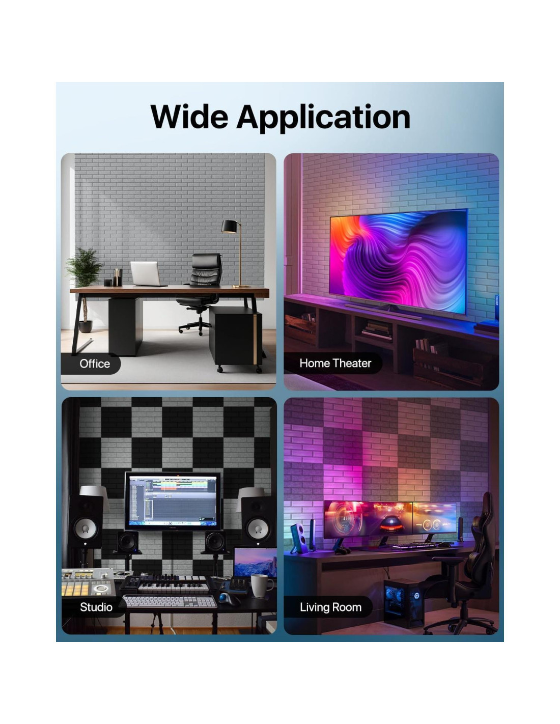 - Paneles Acústicos Aislantes de Pared con Diseño de Ladrillo: La forma de ladrillo de nuestros paneles de amortiguación sonora combina versatilidad y estética, creando un impacto visual único. Este diseño innovador no solo mejora la decoración, sino que también optimiza la absorción de sonido, haciendo que estos paneles sean tanto funcionales como elegantes.