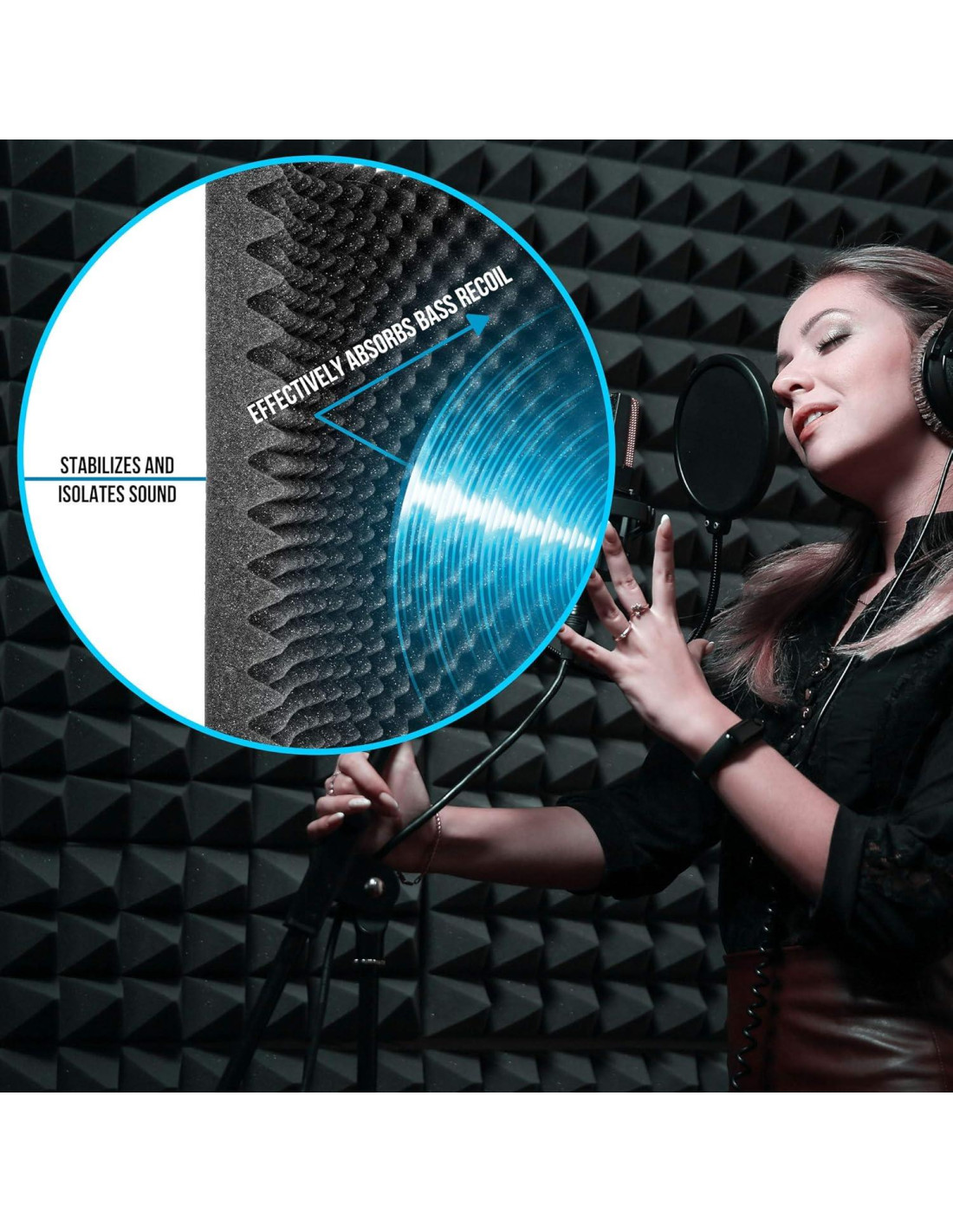 - ABSORCIÓN AVANZADA - Estilo de Cuña Wall-Pad. Experimenta una superior absorción de sonido con el diseño de estilo de cuña Wall-Pad. Esta espuma de ingeniería que reduce el ruido estabiliza, aísla y reduce el ruido no deseado, la reflexión del sonido y la resonancia de audio.