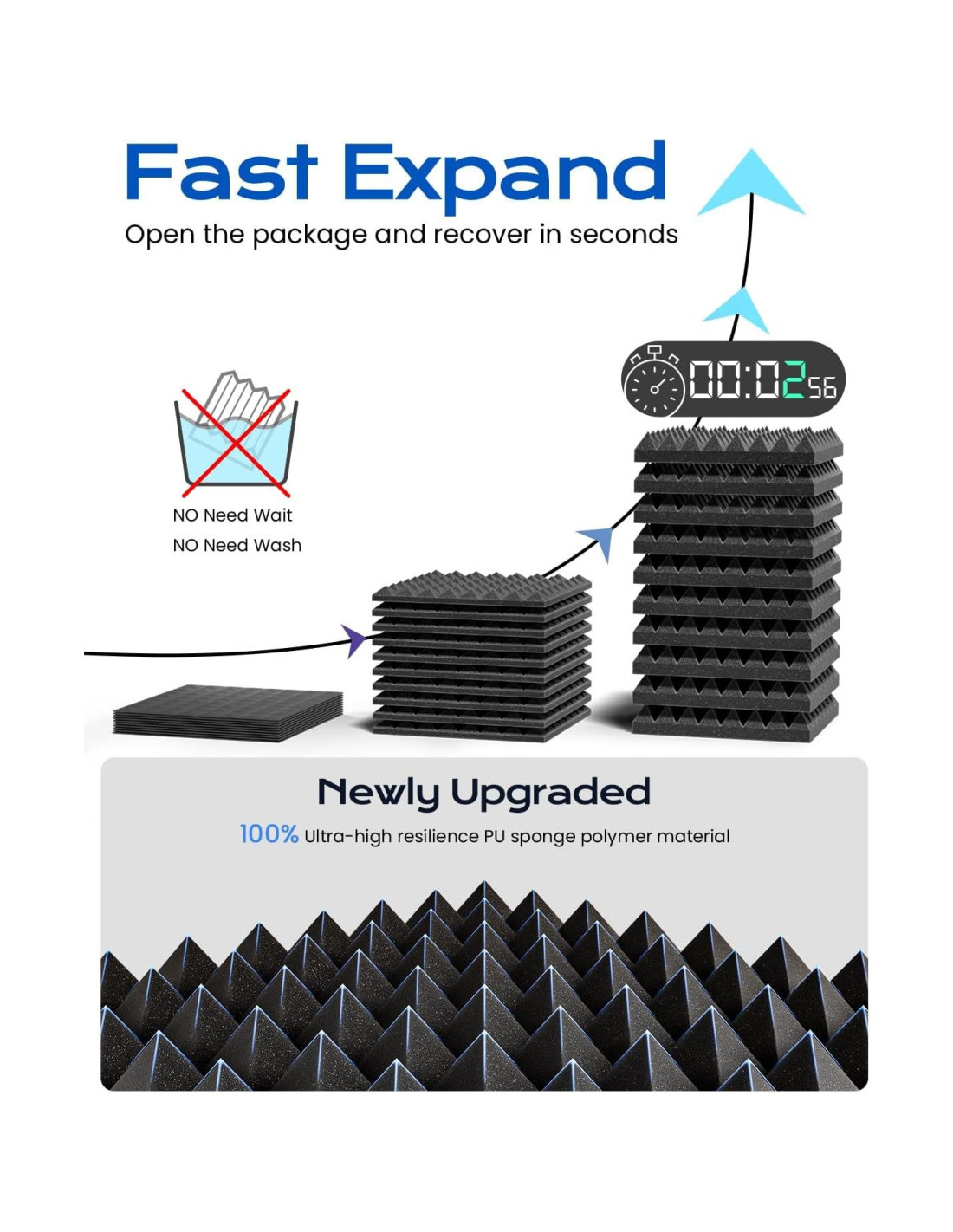 - [Rápida Expansión y Recuperación] Los paneles de pared a prueba de sonido Sonicism están compuestos de material de polímero de esponja PU de ultra alta resiliencia al 100%, que se presiona instantáneamente a través de docenas de nuevos procesos de alta temperatura. Lleno de elasticidad y resistencia, se expandirá rápidamente y volverá a su forma original en segundos después de abrir el paquete. Sin remojo, sin esperar.