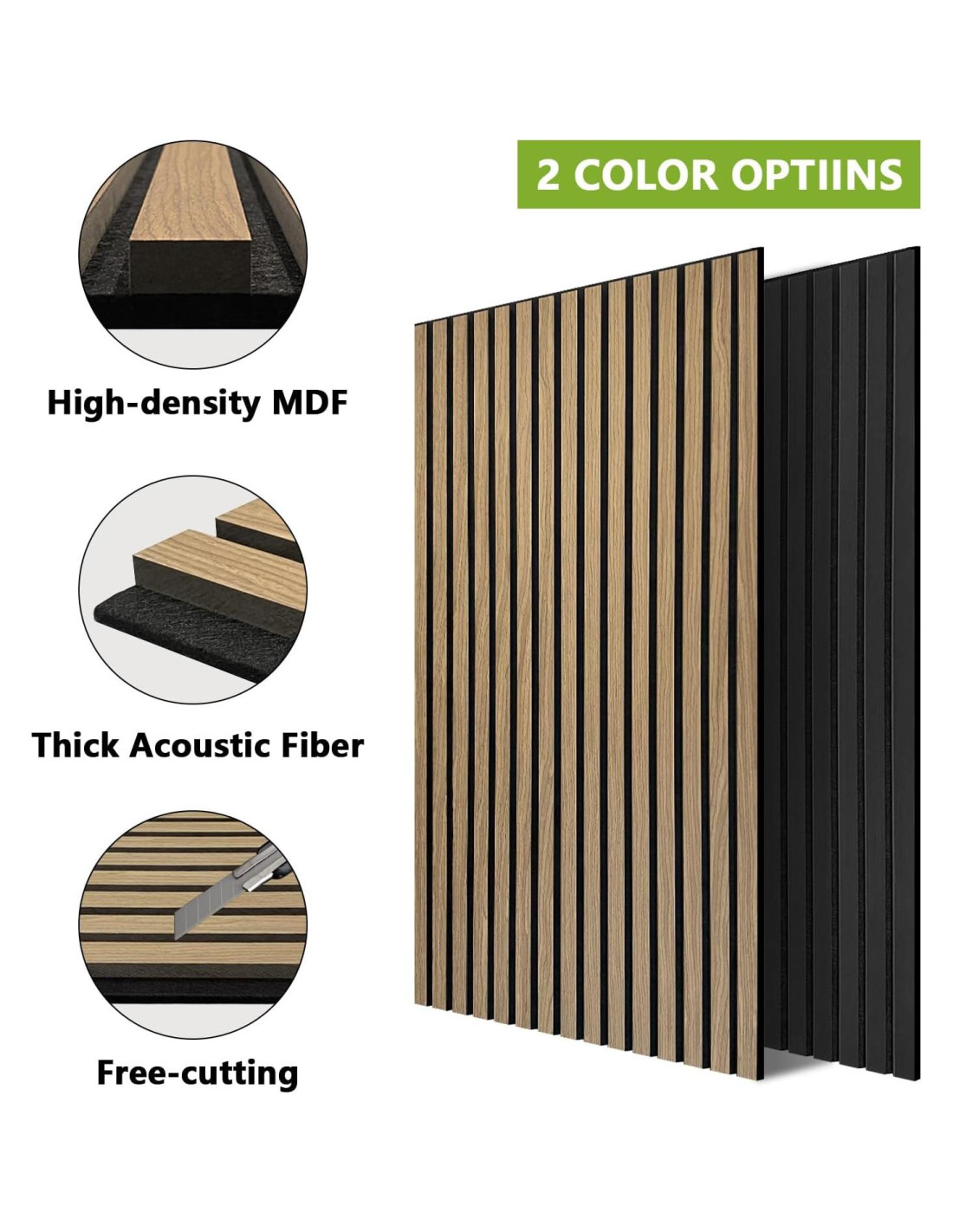 - Rápido y Fácil de Instalar: Puedes instalarlos rápidamente utilizando herramientas básicas, y ya sea que los instales en paredes o techos, estos paneles de madera traerán efectos de aislamiento acústico instantáneos a tu habitación.