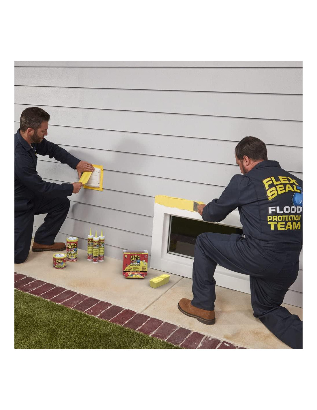 La familia de productos de protección contra inundaciones Flex Seal está diseñada específicamente para crear múltiples capas de protección impermeable y superresistente, y para ser fácilmente removida después de que las aguas de inundación retrocedan. Pueden ayudar a ralentizar o incluso detener el agua de entrar en las estructuras. Las inundaciones son ahora el desastre natural más importante en el planeta. Ayude a defender su hogar de las aguas crecientes aplicando nuestra pasta, cinta, spray y líquido de protección contra inundaciones en cada abertura de su hogar donde las aguas de inundación podrían entrar. Todos nuestros productos de protección contra inundaciones han sido diseñados para una simple remoción una vez que las aguas de inundación retroceden. Cuando se utilizan en combinación y según las indicaciones, nuestros productos de protección contra inundaciones han sido verificados independientemente por UL Solutions para contener 0.91 m de agua durante 14 días en huecos de hasta 1.27 cm. Todos nuestros productos de protección contra inundaciones vienen con un folleto de direcciones de aplicación completo, así como un enlace a videos detallados de 'cómo hacerlo', guiados por profesionales de protección contra inundaciones. Nuestro producto principal de protección contra inundaciones. Debe usarse como una capa base para su primera capa de protección. La boquilla del cartucho le permite apuntar a áreas específicas que necesitan ser selladas. Úselo en ventanas, puertas, puertas de garaje y todo tipo de costuras, marcos, umbrales, conductos, ventilaciones y ductos, cerraduras, y más. Úselo en áreas más grandes, superficies planas, o directamente sobre nuestros otros productos de protección contra inundaciones. Ideal para ventanas de sótano, puertas para mascotas, espacios de acceso, costuras, alféizares, grietas en los cimientos, y más. Úselo principalmente como una capa final de protección para ayudar a sellar cualquier pequeño agujero o abertura que pueda haberse pasado por alto. Aplique una cantidad generosa directamente sobre nuestros otros productos de protección contra inundaciones. Cada capa debe ser más ancha y superponerse a las capas anteriores de nuestros productos de protección contra inundaciones. Puede usarse como una capa de imprimación, antes de aplicar nuestros otros productos de protección contra inundaciones, o como una capa final de protección para llenar cualquier pequeña abertura o agujero que pueda haberse pasado por alto. Úselo en combinación con nuestros otros productos de protección contra inundaciones. Perfecto para sellar áreas de difícil acceso, como rieles de puertas, costuras, alféizares, pequeñas aberturas, esquinas, formas irregulares, y más. Dependiendo de la antigüedad y el tipo de construcción, puede haber áreas que no se pueden ver o sellar. Las superficies porosas no selladas pueden filtrar agua durante la exposición prolongada al agua. No está diseñado para proteger contra vientos extremos, presión del agua, escombros voladores o flotantes. No está destinado a detener el agua de inundaciones repentinas o si hay daños estructurales en el edificio.