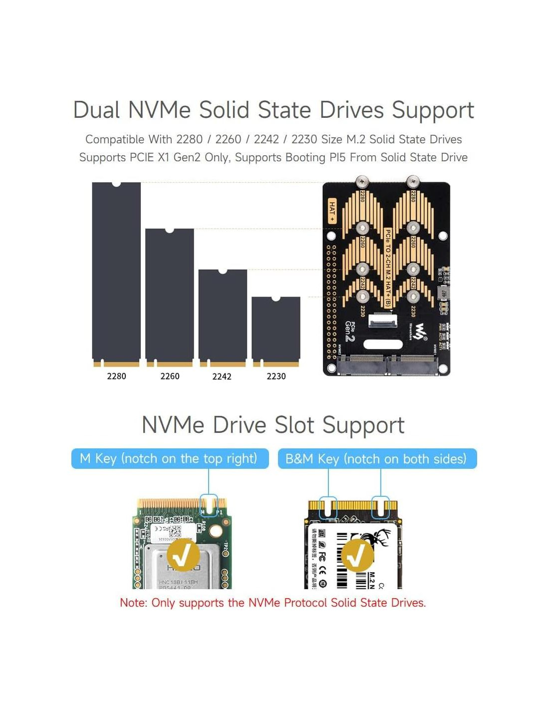 - Compatible con raspberry pi 5, soporta m.2 nvme ssd 2230 2242 2280, lectura/escritura de alta velocidad