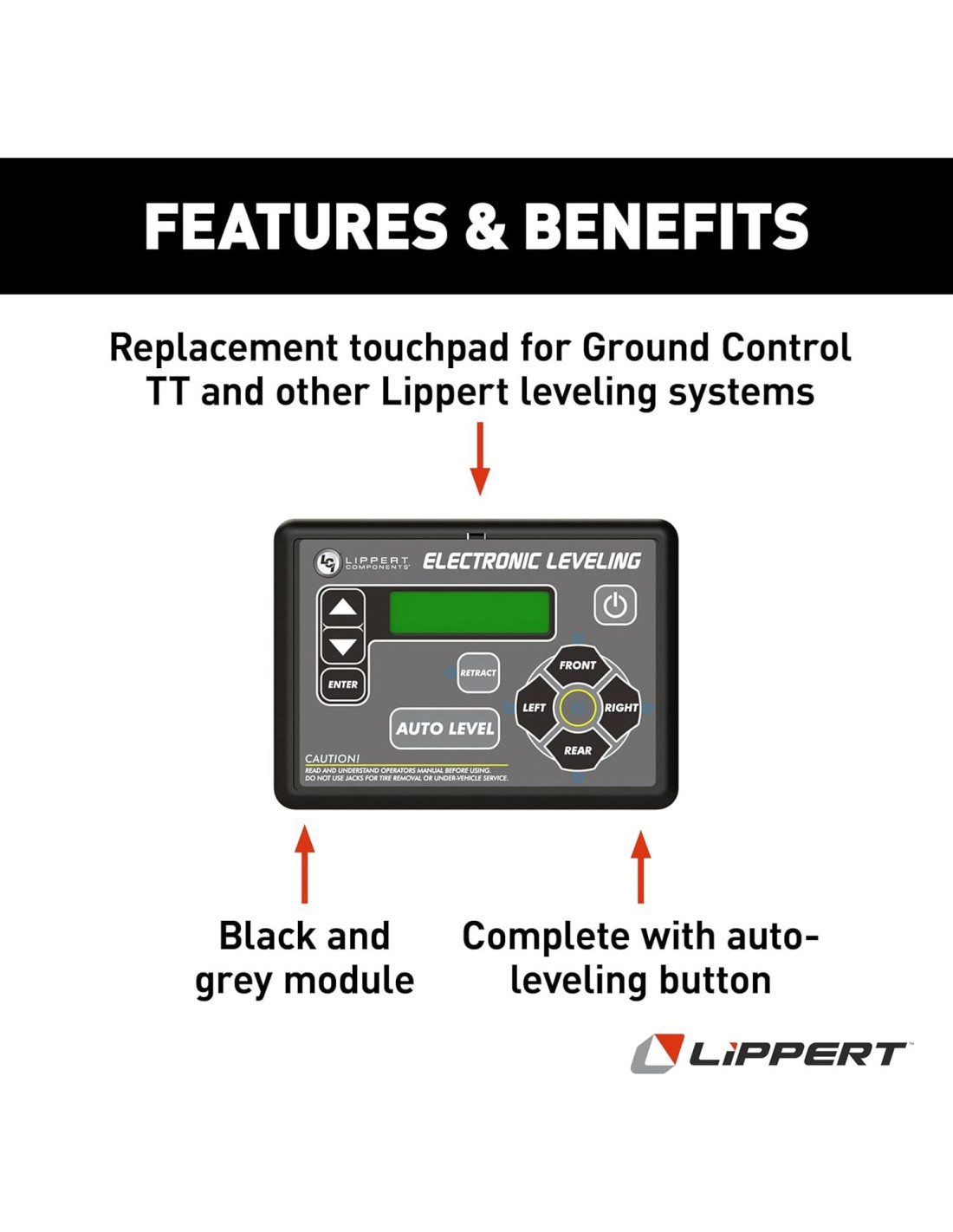 - REEMPLAZO AUTÉNTICO - Confíe en el panel táctil de reemplazo auténtico de Lippert para una integración sin problemas en varios sistemas de nivelación Lippert, incluyendo Ground Control TT, asegurando una funcionalidad óptima