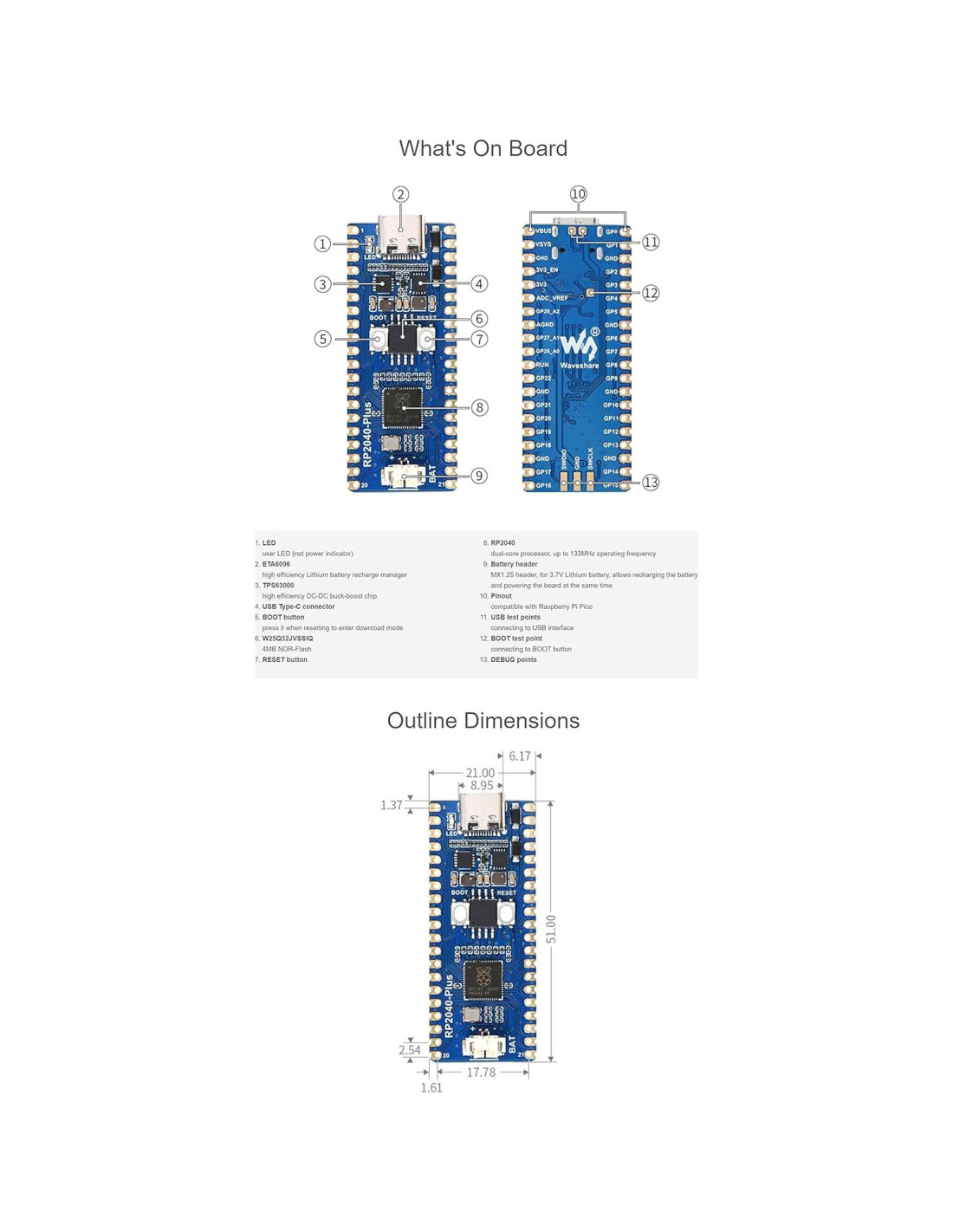 - Color: RP2040-Plus-M