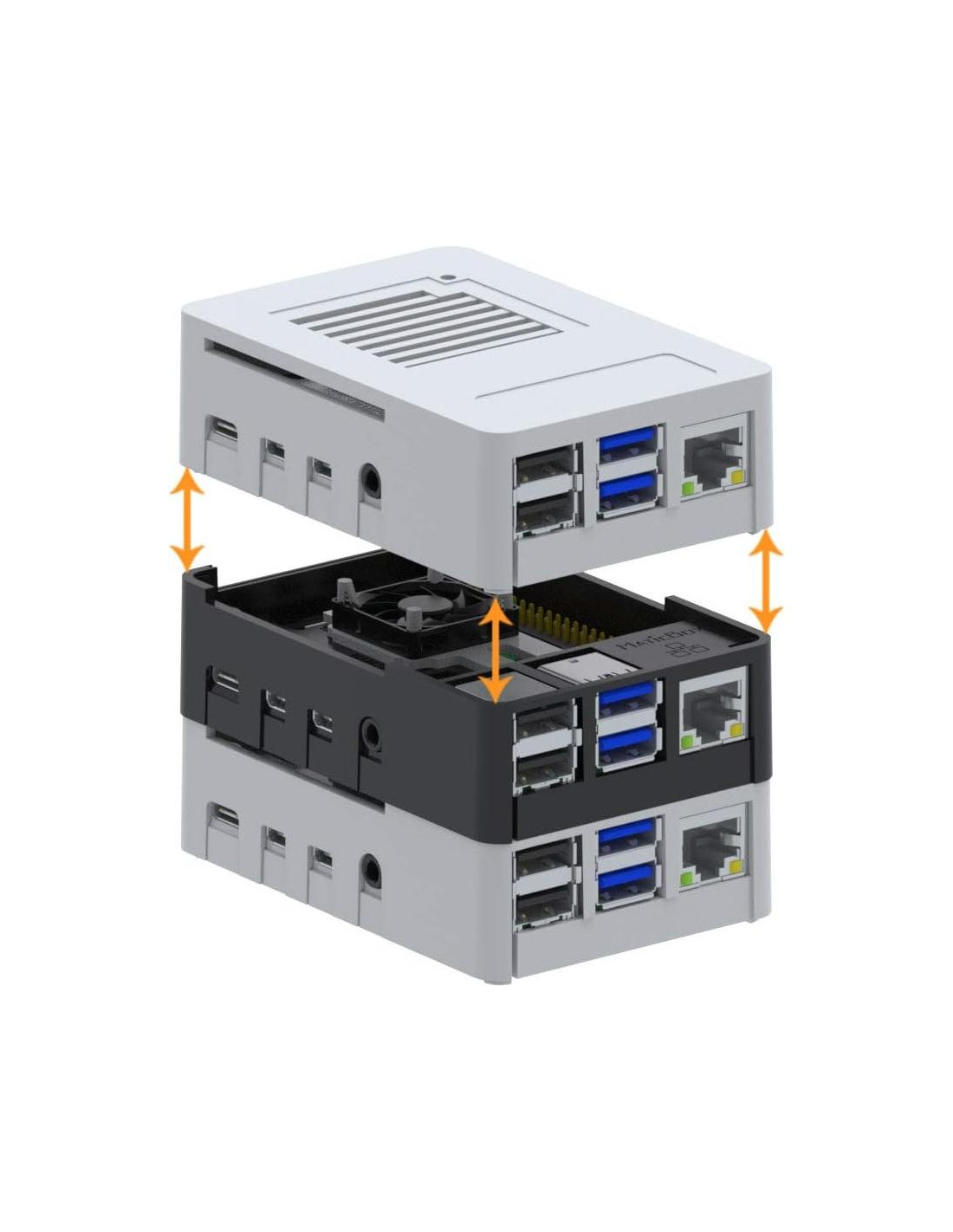 MaticBox4 es una caja funcional e innovadora para Raspberry Pi 4. Soporta Raspberry Pi 4 Modelo B en todas las configuraciones de memoria - 2GB, 4GB y 8GB. Incluido en este conjunto hay 8 elementos para UNA caja: tapa de perfil bajo, tapa de automatización, pantalla para la apertura de la tapa de automatización, adaptador de ventilador, espaciador de adaptador de ventilador, cuerpo de la caja, base de la caja y base de montaje universal. Tenga en cuenta que la placa Raspberry Pi y el ventilador NO ESTÁN INCLUIDOS. La tapa de perfil bajo resulta en un recinto compacto, mientras que la tapa de automatización proporciona un espacio adicional para alojar HATs de automatización con elementos grandes. En ambos casos hay mucha ventilación y acceso a todos los puertos, incluyendo acceso a los puertos GPIO y puertos HAT desde el exterior de la caja. Gracias a su base de montaje universal, la caja se puede montar mediante tornillos en superficies planas (tornillos no incluidos) o en rieles DIN. Cuando ninguna de estas opciones es viable, hay ocho ranuras para bridas. La caja también viene con múltiples opciones de montaje para un ventilador de 25 * 25 mm que tiene de 5 mm a 10 mm de altura (ventilador no incluido). El ventilador se puede encajar directamente en el cuerpo de la caja, o montarse en el adaptador de ventilador proporcionado. El espaciador de ventilador eleva el ventilador, y es necesario para sujetar de forma segura ventiladores más cortos de 5 mm o 6 mm o para dejar más espacio para disipadores de calor de procesador más grandes (disipador de calor no incluido). Las cajas MaticBox4 se pueden apilar de forma segura. La base de una caja actúa como tapa para otra y se bloquea de forma segura en su lugar, resultando en un gran aspecto de un clúster de computadoras de placa única.