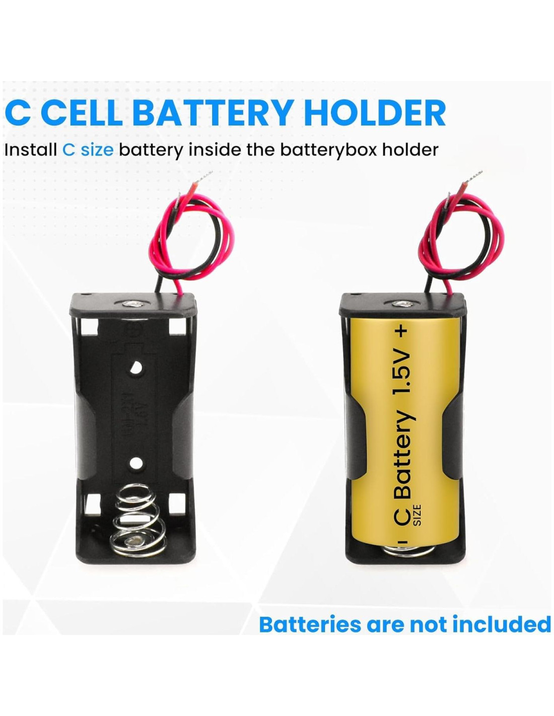 - El soporte de batería C es adecuado para 1x batería de tamaño C de 1.5V (Nota: Batería NO incluida), puede usarse como una fuente de energía externa perfecta.