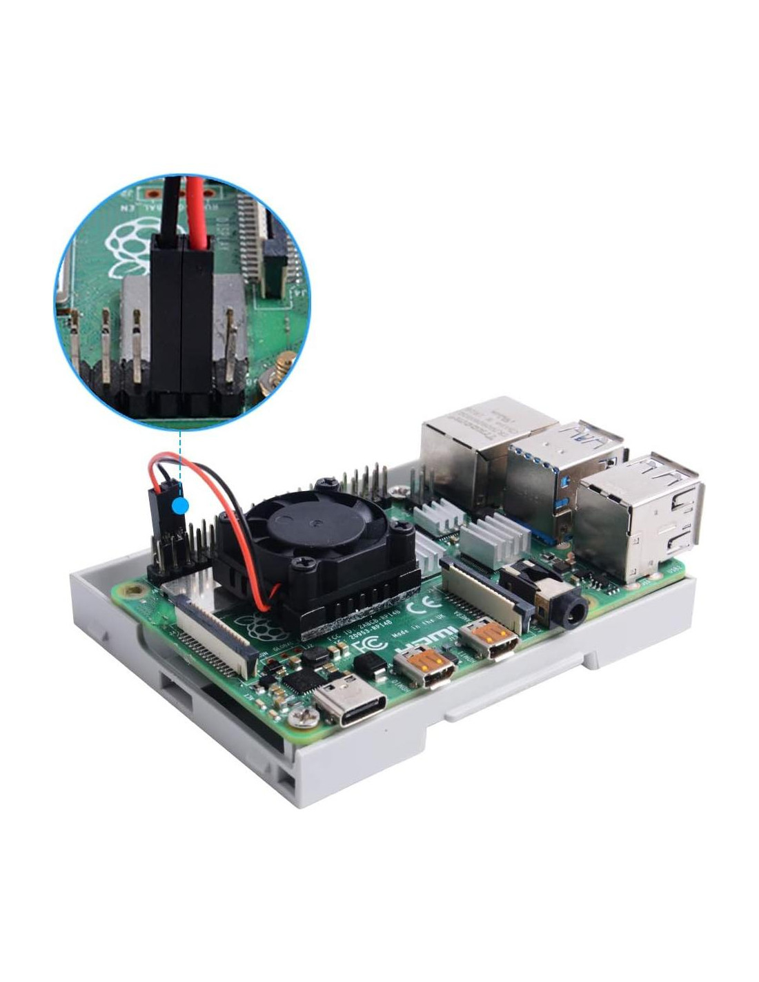 - El paquete incluye: 1 x Caja modular ABS para RPi 4B, 1 x Ventilador simple con disipador de calor, 1 x Destornillador, 1 x Paquete de disipadores de calor de aluminio para RPi 4B