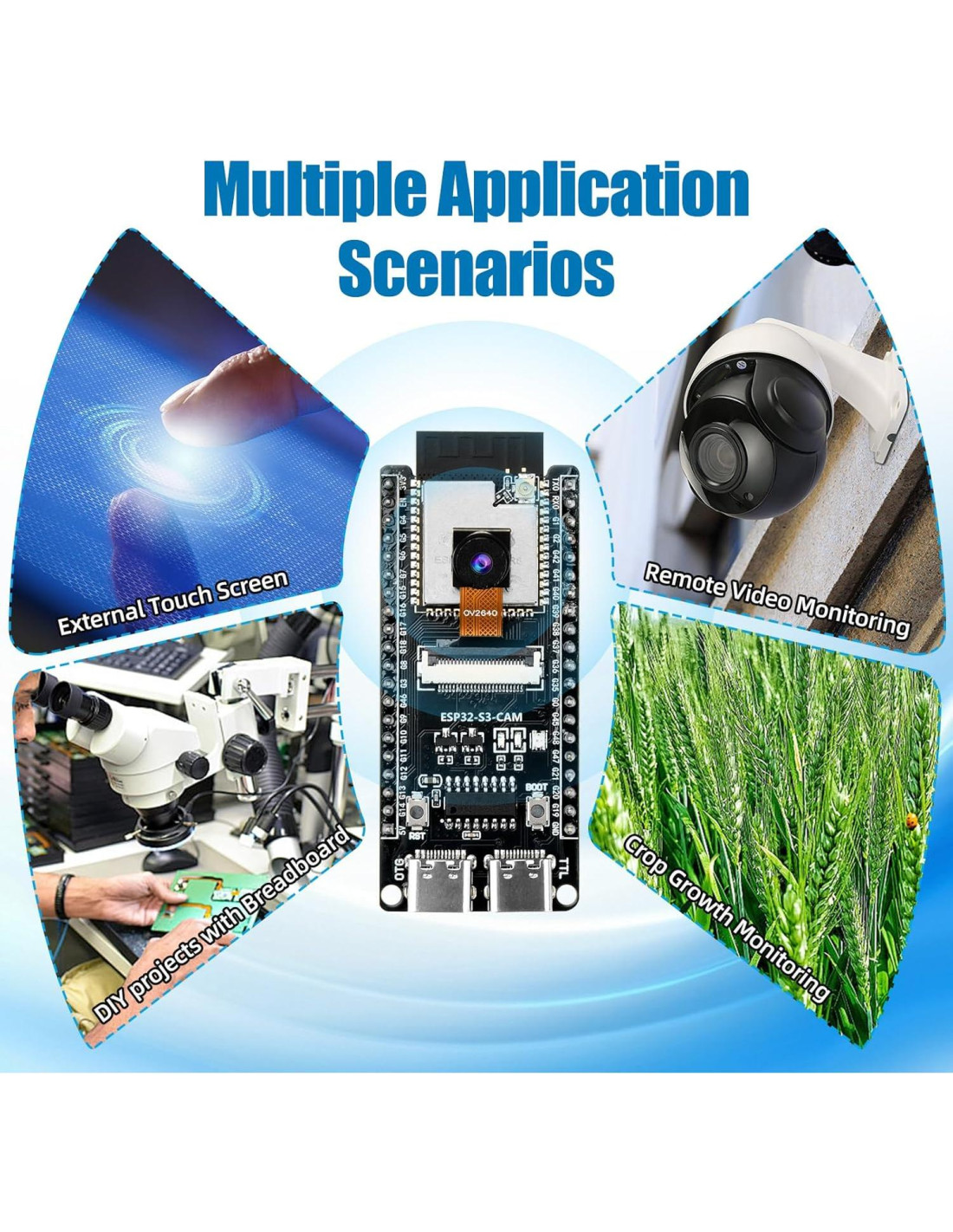 - Aplicaciones de múltiples escenarios: La placa de desarrollo ESP32 S3 mantiene alta estabilidad incluso a altas temperaturas, lo que la hace ideal para entornos industriales, propósitos educativos y proyectos impulsados por IA. Es una opción versátil para robots, dispositivos inteligentes y visión por máquina en aplicaciones de laboratorio o de campo
