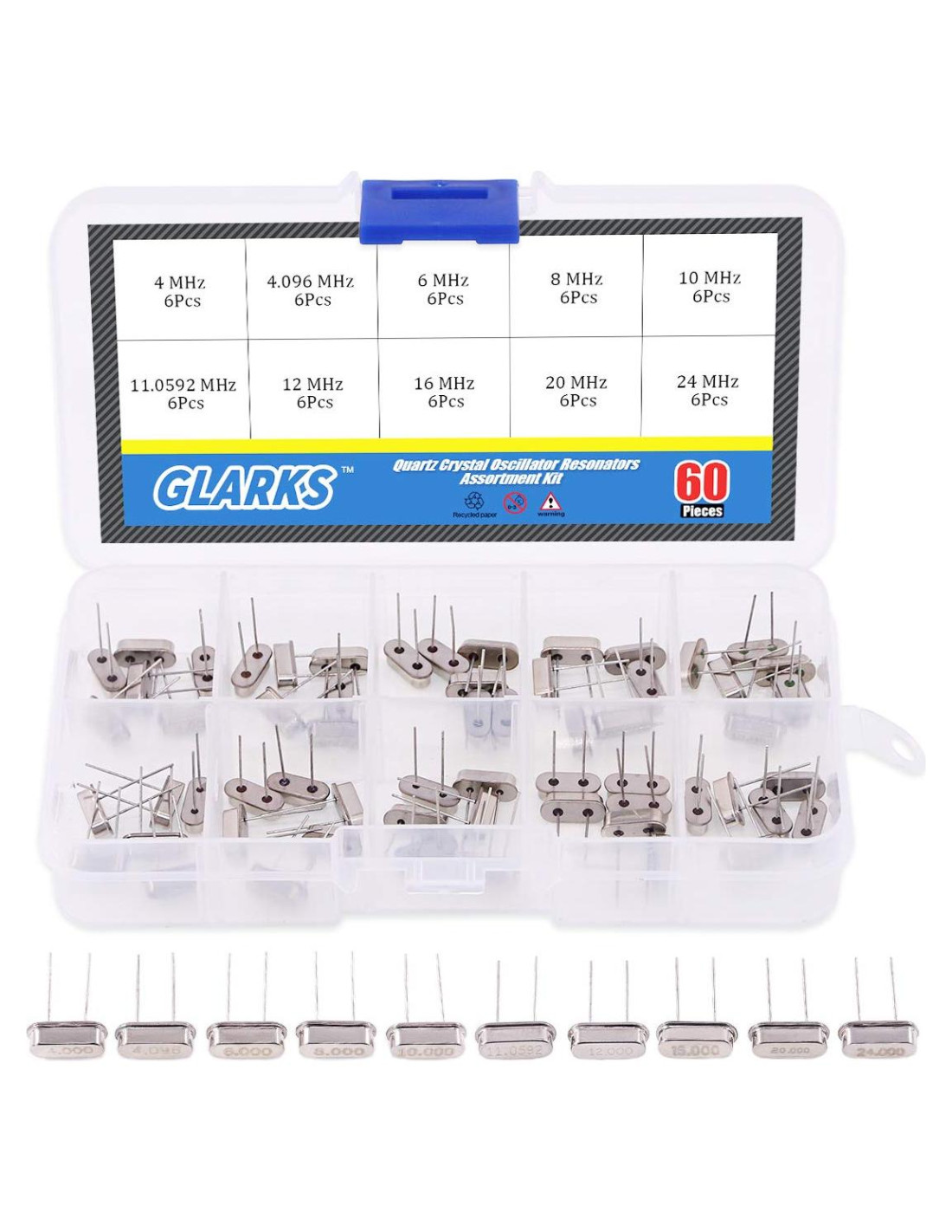 - Paquete: Este kit incluye 10 valores de 4MHz, 4.096MHz, 6MHz, 8MHz, 10MHz, 11.0592MHz, 12MHz, 16MHz, 20MHz, 24MHz total 60pcs (cada 6pcs) en una caja