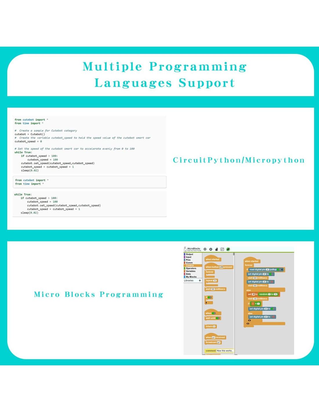 - Productos Compatibles de Elecfreaks Actualmente picoed es compatible con el kit cutebot de Elecfreaks, kit de inicio y kit ringbit.
