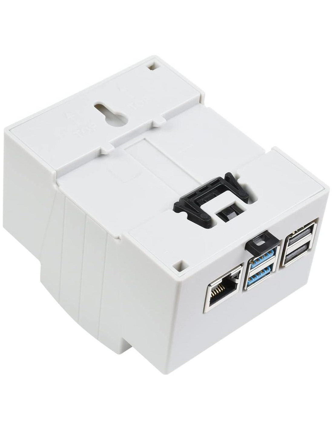 - [Caja ABS para Raspberry Pi 4] Soporte de montaje en riel DIN, Material ABS, Ventana superior clara, Gran espacio interior