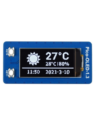 - Conector hembra en placa para conexión directa a Raspberry Pi Pico 2 botones de usuario para una fácil interacción