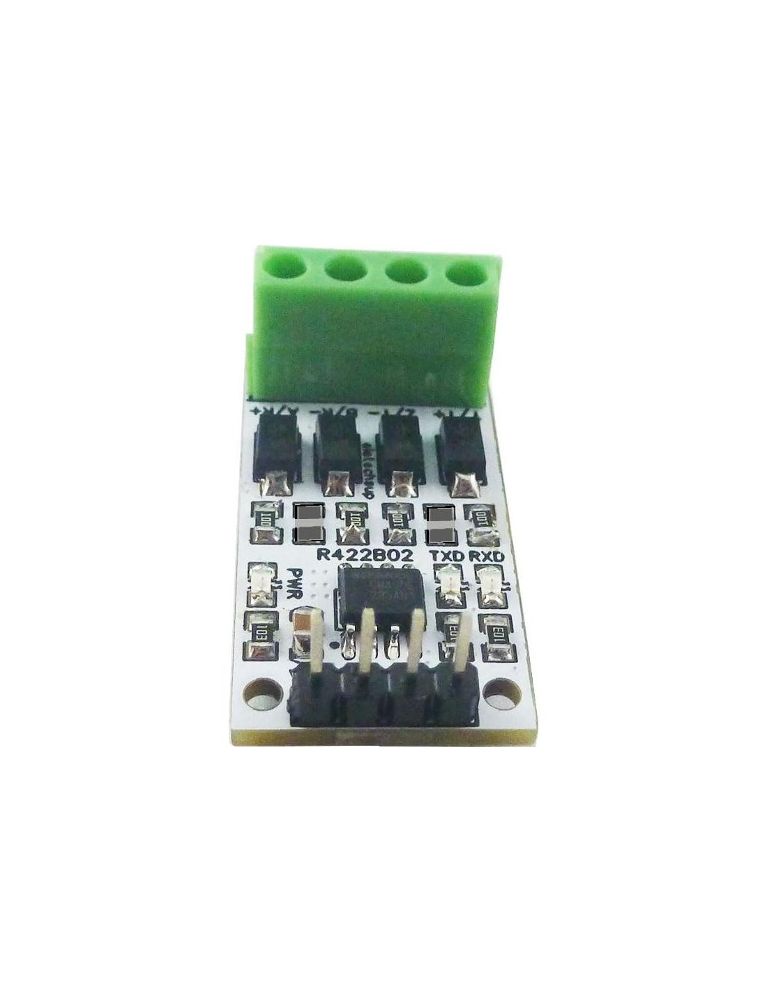 Descripción: Eletechsup R422B02 es un transceptor de señal TTL LvTTL de doble vía completo a señal diferencial (RS422), que puede convertir señales digitales (como: UART PWM GPIO) dentro de 1M en transmisión de señal diferencial. La distancia más larga puede alcanzar 1000 metros, y la tasa de transmisión máxima es de 1MBPS. Es una solución ideal de transmisión de alta velocidad y larga distancia para señales MCU UART PWM GPIO. Transceptor de doble vía completo de señal UART PWM GPIO de 1Mbps Voltaje de trabajo: DC 3-5.5V Corriente en espera: 1MA Corriente de trabajo: 5-50MA Nivel TTL: DC 3.3V/5V Protección ESD: +/-15KV Protección contra sobretensiones: 6.5V Permite hasta 256 transceptores en el bus Rango de tasa de baudios soportado: 1-1000000BPS Los pines de 2.54MM de distancia se pueden incrustar fácilmente en paneles y placas de desarrollo MUC. Temperatura de funcionamiento: -40-85C Tamaño: 34x17x4mm (sin pin), 34x17x12mm (con pin) Peso (sin pin): 2.3g (sin pin), 4.5g (con pin) Descripción de pines VCC: Suministro de energía + (DC 3-5.5V) GND: Suministro de energía - TXD: Puerto de transmisión TTL RXD: Puerto de recepción TTL A/R+: RS422 Recepción+ B/R-: RS422 Recepción- Z/T-: RS422 Transmitir- Y/T+: RS422 Transmitir+ Aplicación RS422 Equipos RS422 MODBUS RTU IO RS485/RS422 Relé/Interruptor/Sensor Línea de fabricación automatizada para FPGA/CPLD STM32 ATMEGA328P MGEA2560 para Raspberry Pi Zero W Pico