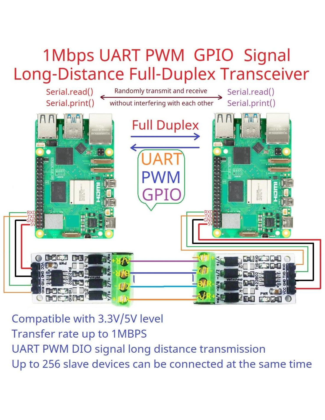 - Transceptor de señal UART PWM GPIO de doble vía completo de larga distancia de 1Mbps