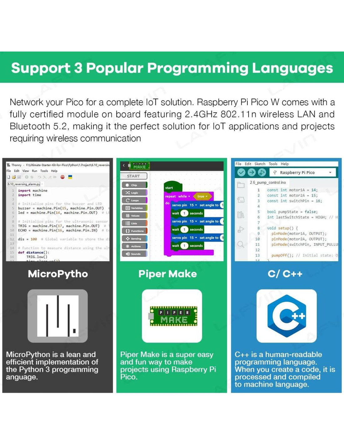- Desde el control simple de luces hasta sistemas de automatización complejos y experimentos de IoT, el Kit de Inicio Ultimate LAFVIN para Pico es un aliado poderoso en tu camino de crecimiento técnico.