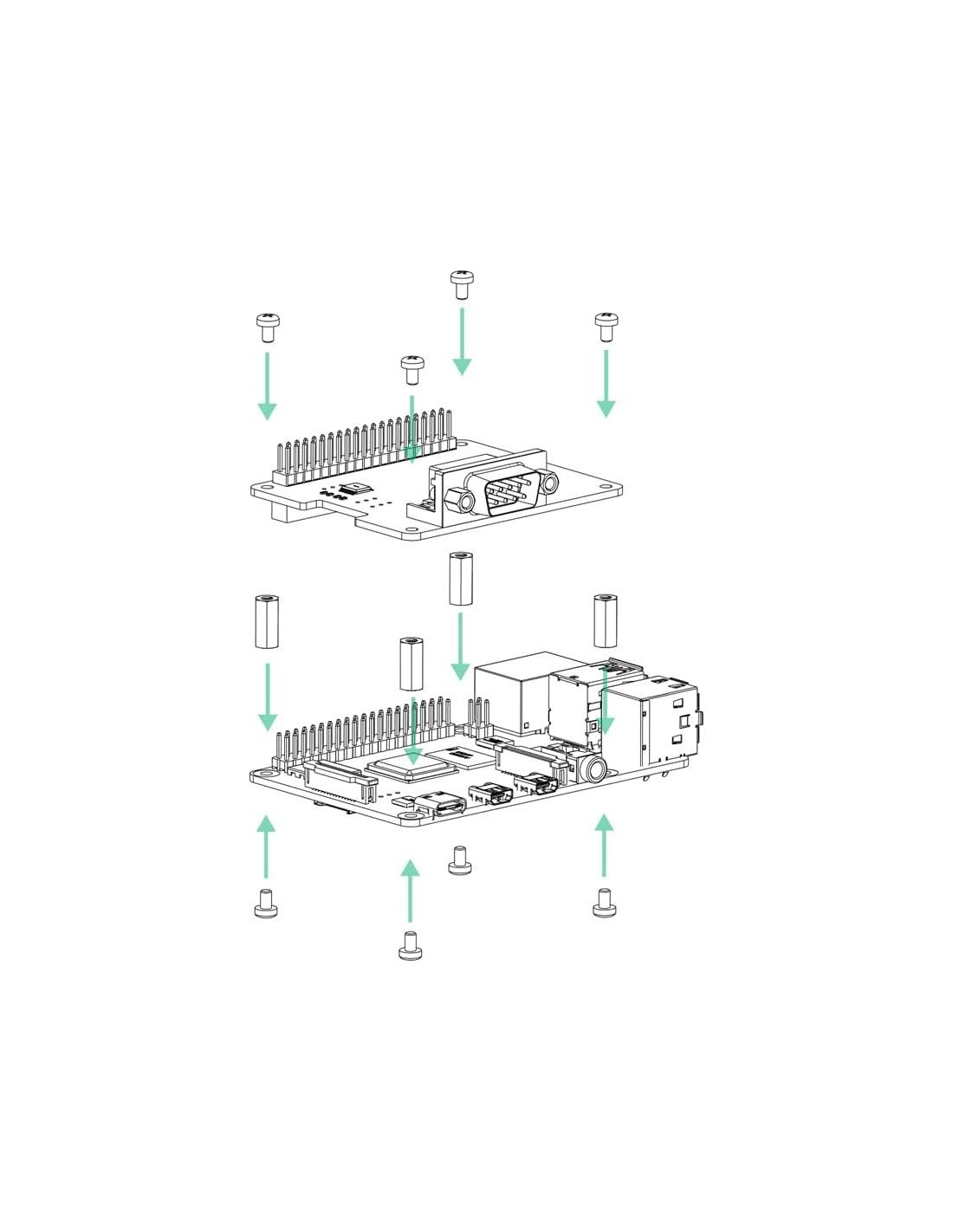 - Conector de expansión GPIO de 40 pines estándar de Raspberry Pi, compatible con las placas de la serie Raspberry Pi. Puerto serie RS232 estándar, ideal para conectar periféricos de comunicación serie RS232, equipos industriales (como PLCs), puertos de consola serie y equipos de propósito especial.