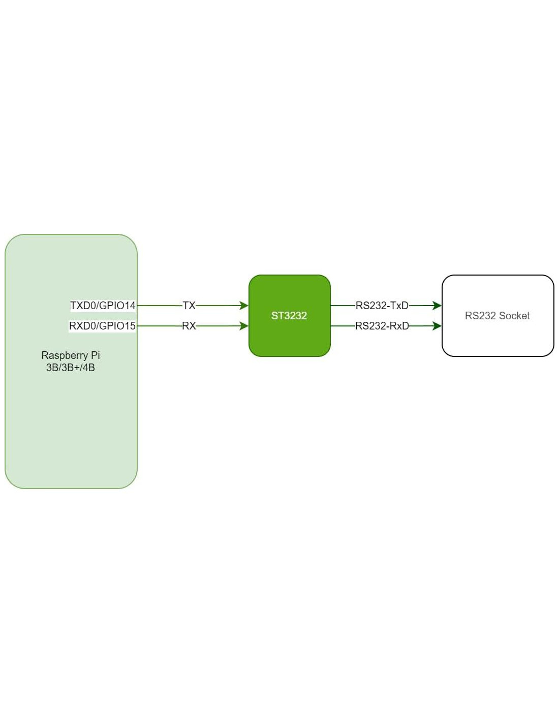 - Usando el esquema IC ST3232, el HAT serie presenta un puerto RS232 macho DB9 conectado a los pines UART del Pi a través de un IC ST3232. El IC ST3232 convierte el puerto UART del Pi a RS232, lo que permite la comunicación serie con cualquier dispositivo serie compatible con RS232. La tasa de datos mínima garantizada de la comunicación es superior a 250 kbps. Soporta RS232. RS232: comunicación a dúplex completo.