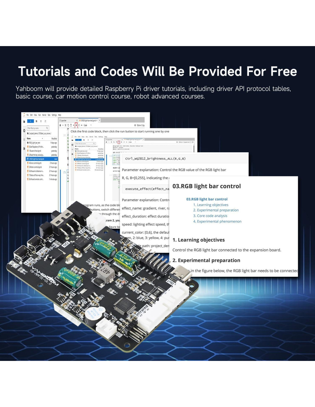 - Conducción y expansión más potentes: equipada con controlador de motor de 4 canales, controlador de servo PWM de 2 canales, así como sensor de seguimiento, módulo ultrasónico, tira de luz RGB y otras interfaces, flexible para satisfacer las necesidades de varios proyectos robóticos.