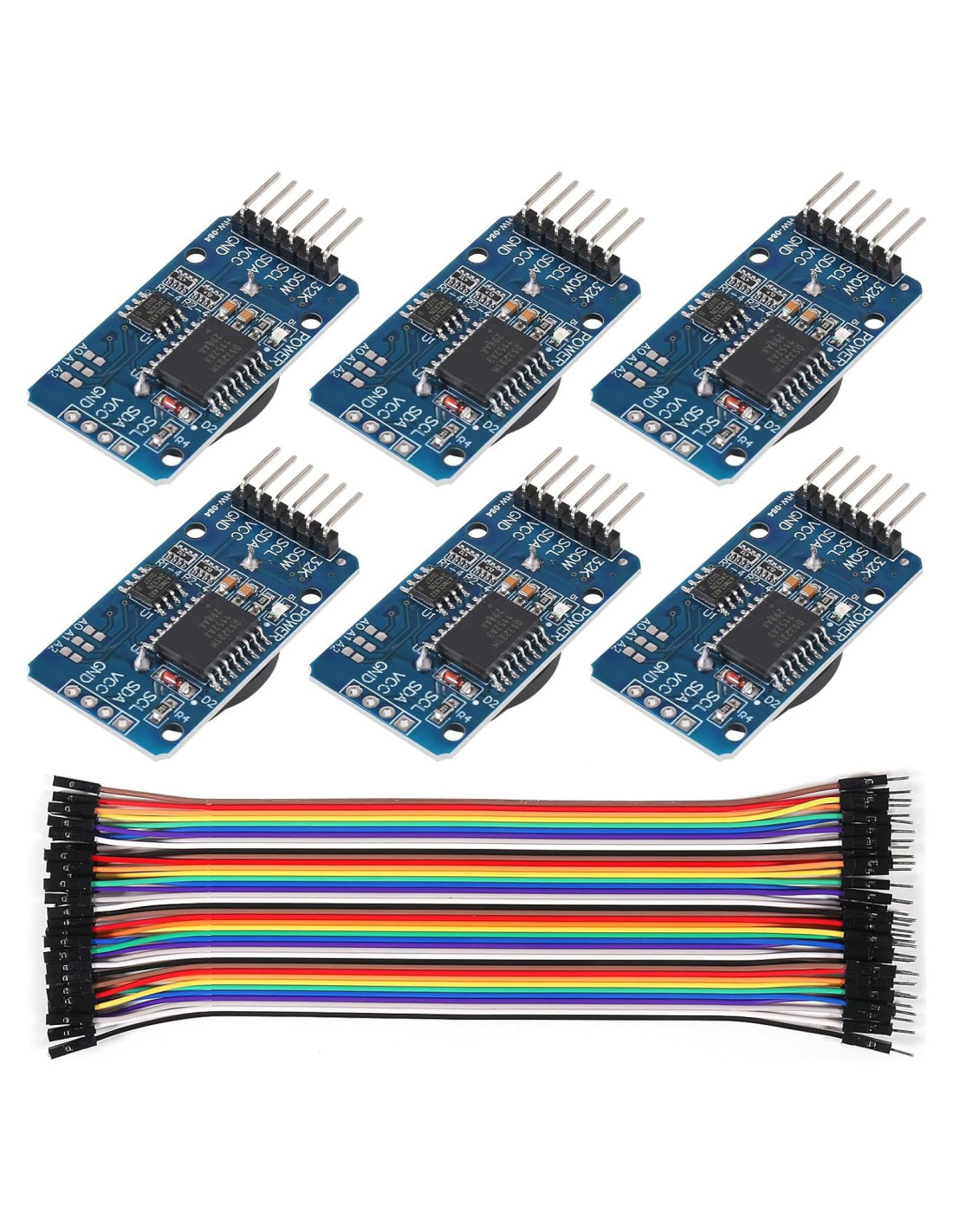 Parámetros del Módulo de Reloj en Tiempo Real DS3231: 1. Tamaño: 38mm (L) * 22mm (W) * 14mm (H) 2. Peso: 8g 3. Voltaje de operación: 3.3-5.5V 4. Chip de reloj: chip de reloj de alta precisión DS3231. (hay 3 chips diferentes para este módulo de reloj: DS3231N, DS3231SN y DS3231M, lo enviamos al azar) 5. Precisión del reloj: rango de 0-40 C, la precisión 2ppm, el error fue de aproximadamente 1 minuto 6. Chips de memoria: AT24C32 (capacidad de almacenamiento 32K) 7. Generador de reloj en tiempo real segundos, minutos, horas, día, fecha, mes y año. Y proporciona validez hasta el año 2100 compensación de año bisiesto 8. Sensor de temperatura del chip viene con una precisión de +/- 3 C 9. Interfaz de bus IIC, la velocidad de transmisión máxima de 400KHz (voltaje de trabajo de 5V) 10. Puede ser en cascada con otro dispositivo IIC, las direcciones 24C32 se pueden unir A0/A1/A2 modificar la dirección predeterminada es 0x57 Características del Producto: Dos alarmas de tiempo del día. Señal de salida de onda cuadrada programable. Salida RST/entrada de rebote de reinicio de botón. Entrada de respaldo de batería para mantenimiento continuo del tiempo. Interfaz serial simple se conecta a la mayoría de los microcontroladores. Descripción de Pines: 32KHz: salida SQW: Interrupción Activa BAJA o salida de onda cuadrada SCL: Entrada de Reloj Serial SDA: Datos Serial I/O VCC: Pin de Alimentación DC GND: Tierra Paquete incluido: 6PCS Módulo de Reloj en Tiempo Real DS3231 Sensor