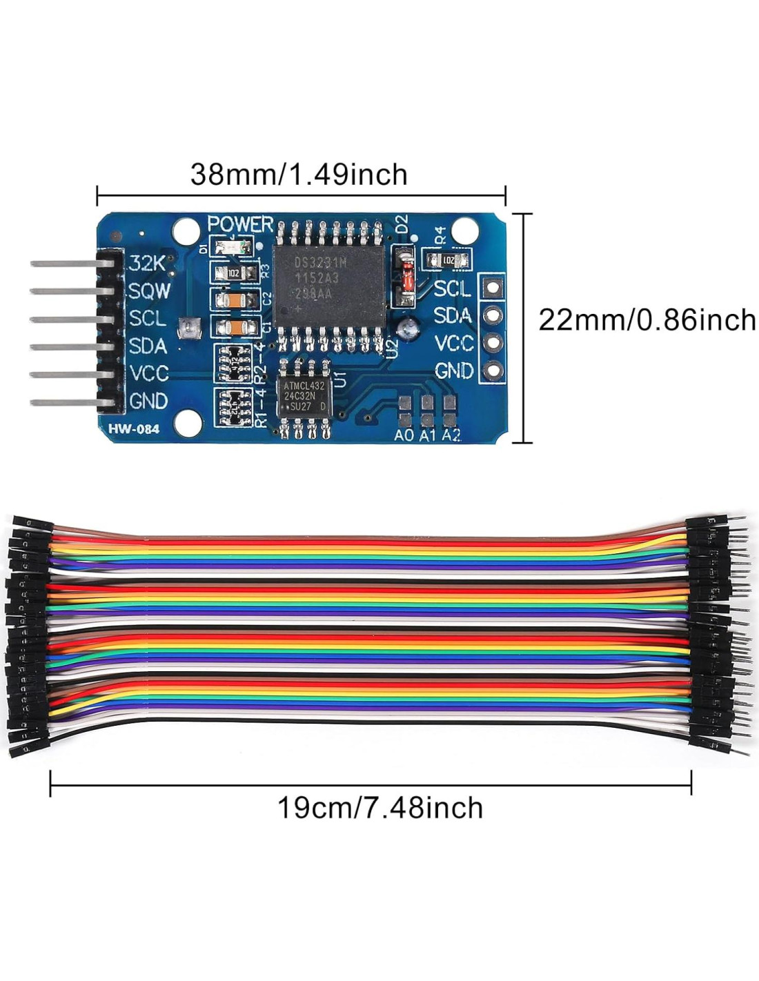 - Módulo de Reloj DS3231 AT24C32 Módulo de Reloj en Tiempo Real Voltaje de trabajo: 3.3V -- 5.5V, Chip de reloj: chip de reloj de alta precisión DS3231M, Chips de memoria: AT24C32