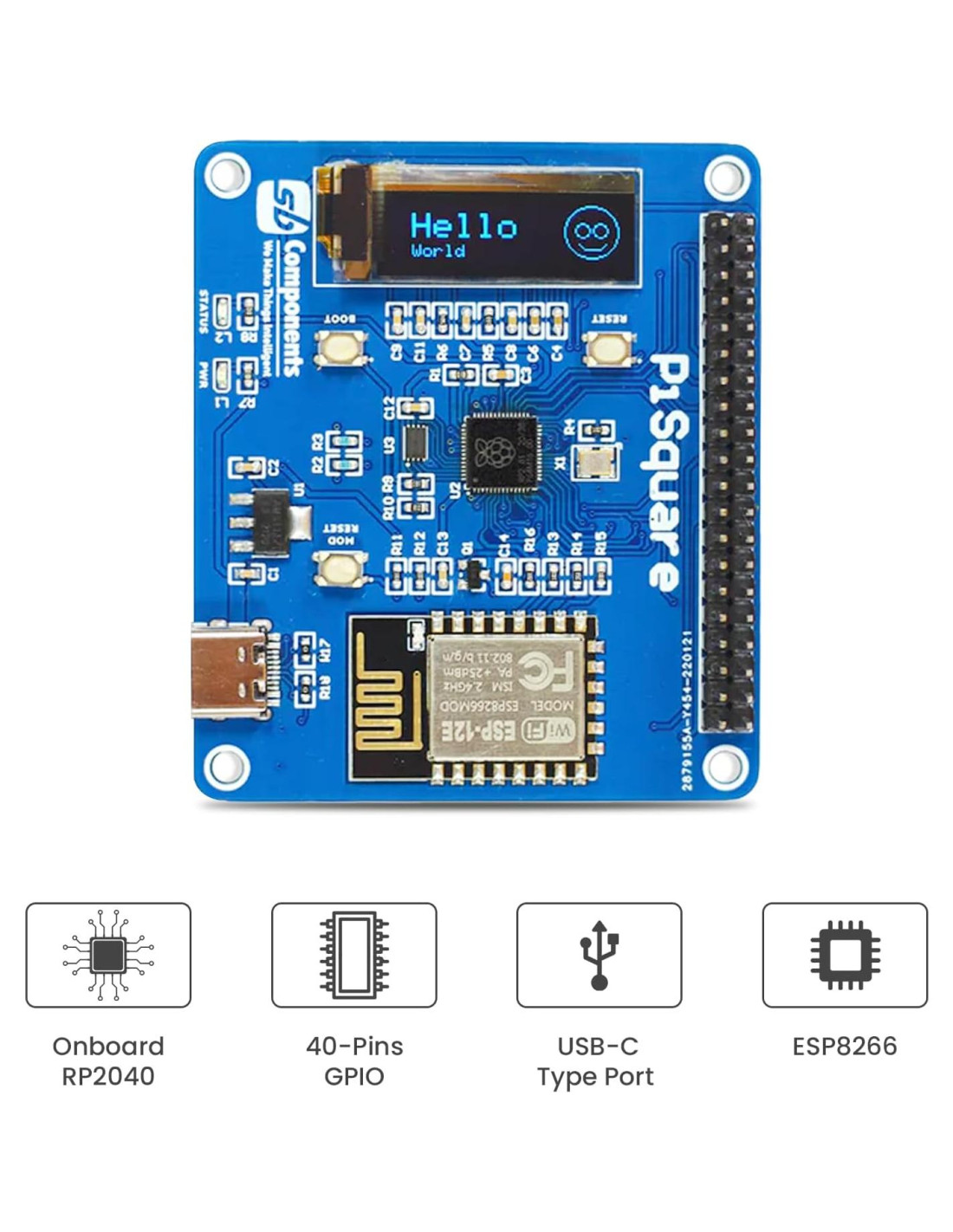 - PiSquare es un HAT de Raspberry Pi basado en RP2040 y ESP-12E