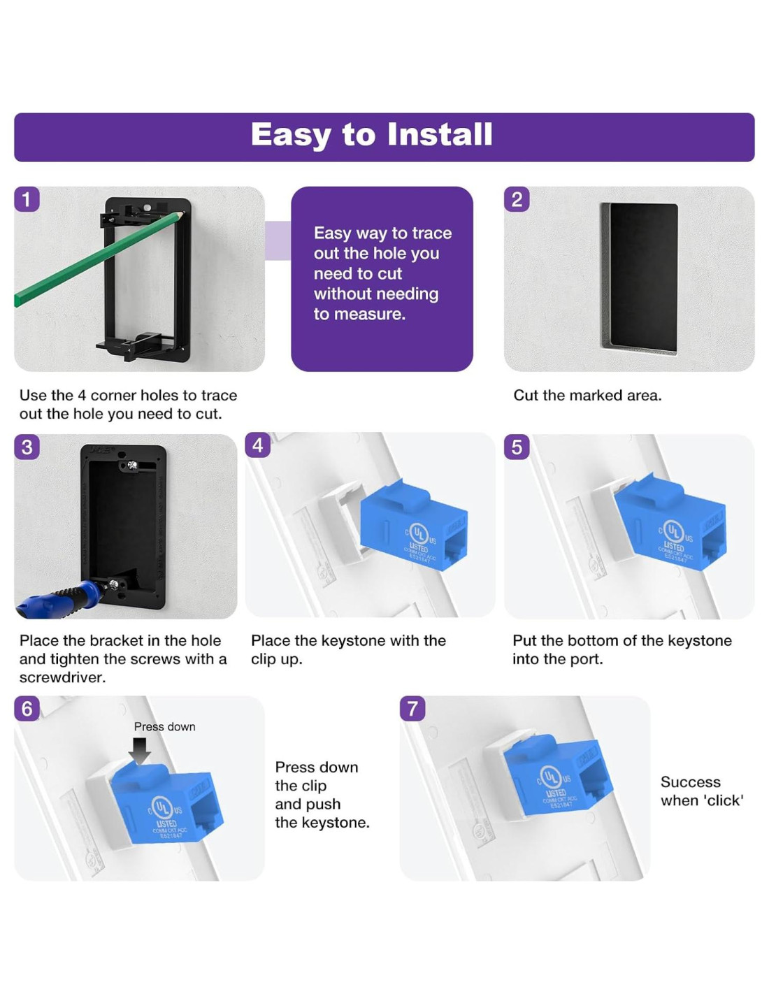 - SEGURIDAD Y PROTECCIÓN LISTADA POR UL: La salida de ethernet ABS listada por UL y el acoplador Keystone cuentan con material resistente al fuego y a impactos. La construcción sólida mantiene una red confiable y sin riesgos para su tranquilidad sin complicaciones