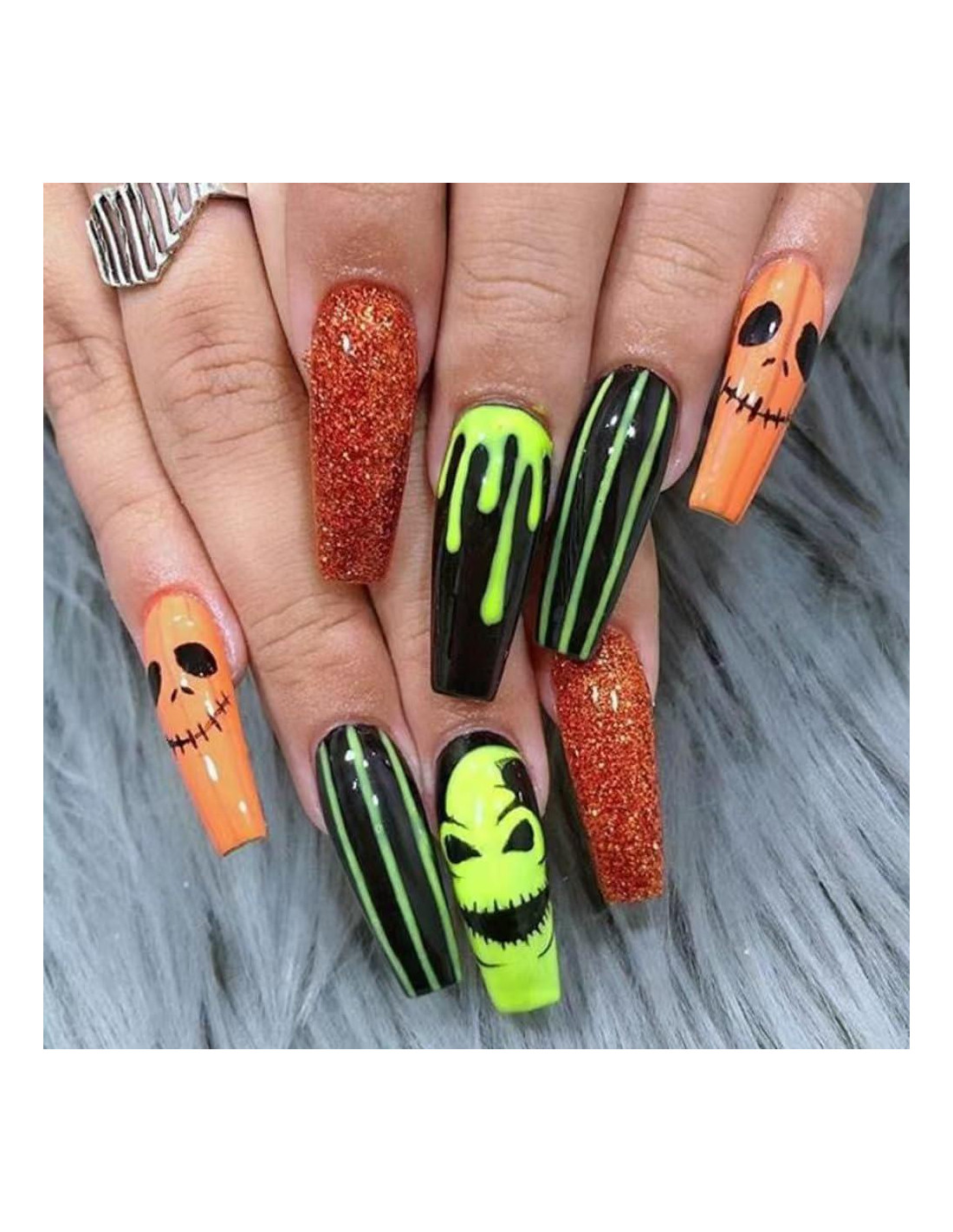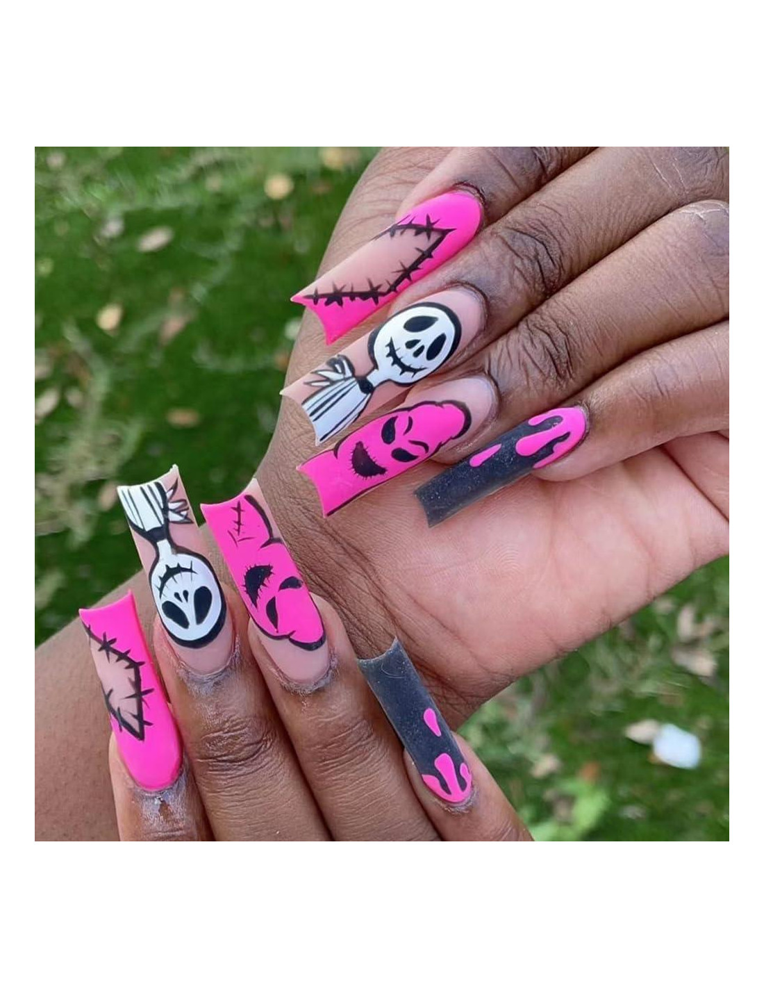 - Plantilla de Estampado Espeluznante: obtendrá 1 placa de estampado de acero inoxidable temática de Halloween, hay 32 patrones en la plantilla de uñas, que se pueden usar para diseñar todo tipo de patrones espeluznantes para crear sus propias uñas de Halloween.