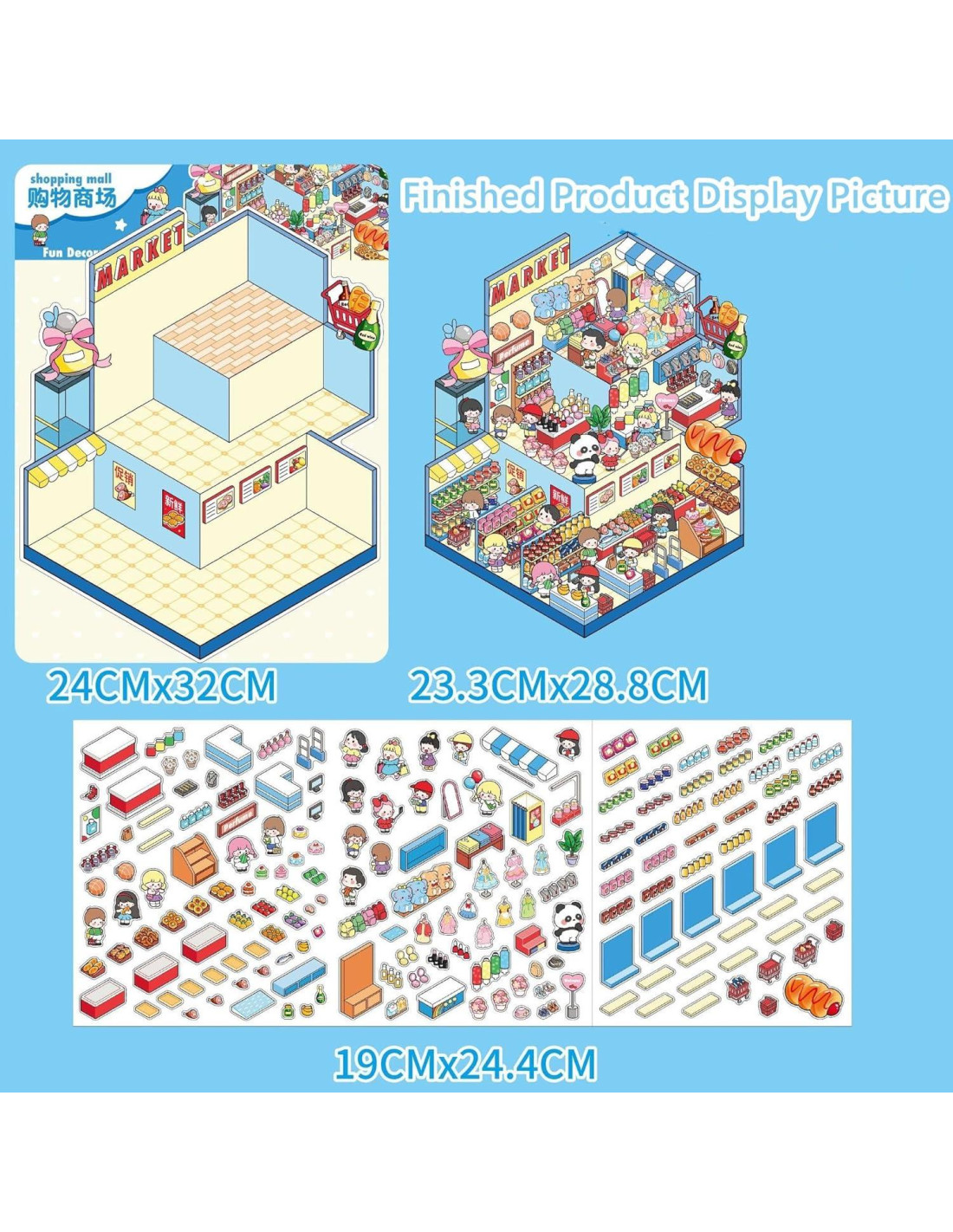 - El Paquete Incluye: 4 mundos diferentes para dar vida con nuestras Pegatinas de Escena 3D grandes, supermercados, patios de comida, festivales de música en la playa, parques de diversiones; Incluido con 1 pinzas, es una actividad ideal para aliviar el estrés y expresar tu estilo único.