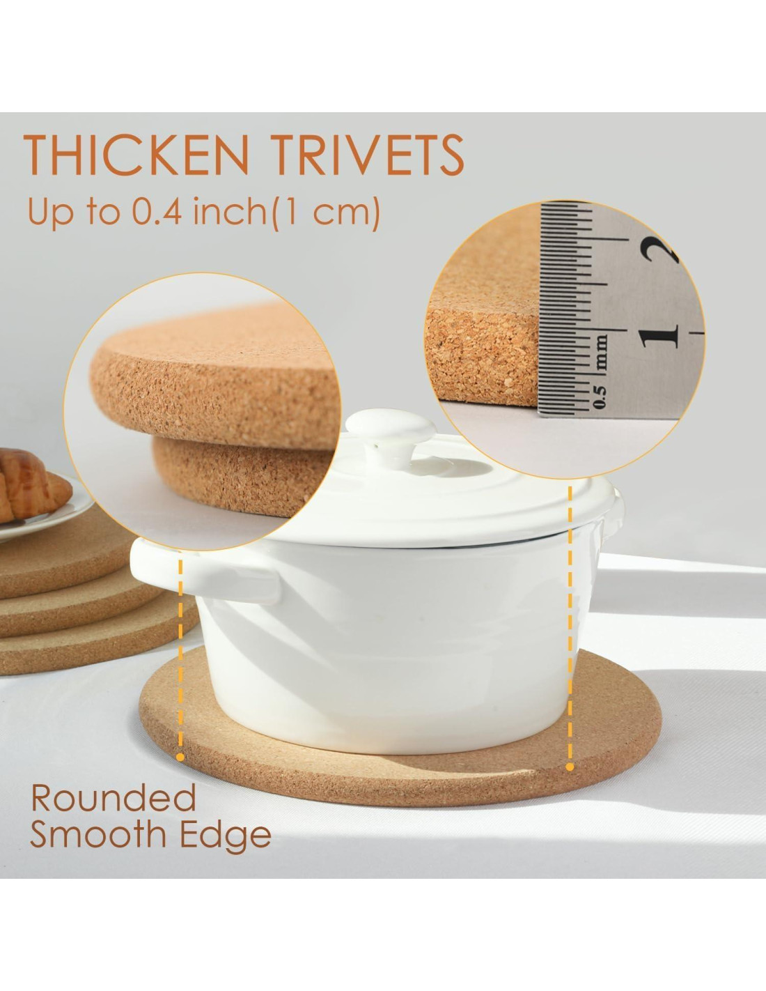 - Estos trivets de corcho de 8" en paquete de 4 para platos calientes se pueden aplicar en el juego de posavasos de corcho para el hogar, alfombrillas de corcho para cocina, alfombrillas para mesa, kit de trivets de corcho para vino, trivets para platos calientes y posavasos de corcho para el lugar de trabajo.