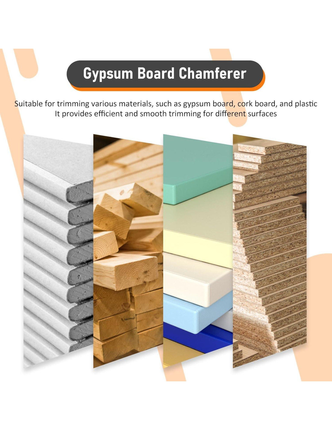 - Ámbito de Aplicación Nuestro biselador de placas de yeso tiene características de plano de mano, adecuado para terminar diferentes materiales, como placas de yeso, corcho y plástico. Proporciona un recorte eficiente y suave en diferentes superficies.