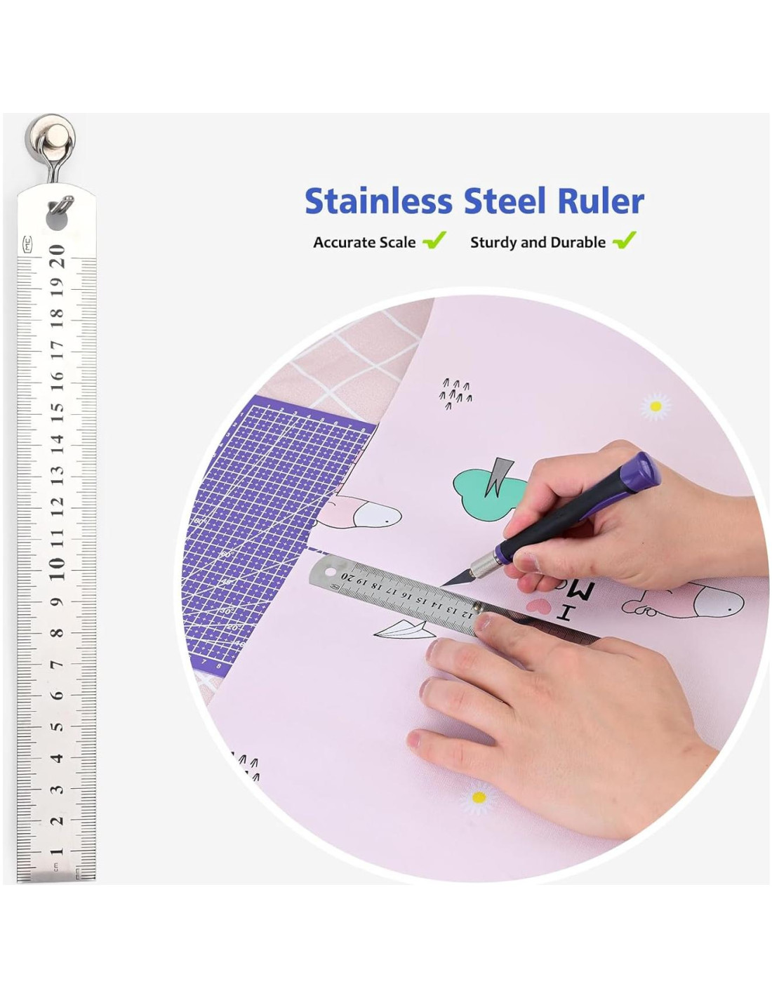 - Contenido del paquete valioso: 1 cuchillo de hobby de precisión con 10 cuchillas extra, 1 tapete de corte A4 PVC, 1 regla de acero (20 cm de longitud), 1 rasqueta de vinilo (15 cm de longitud).