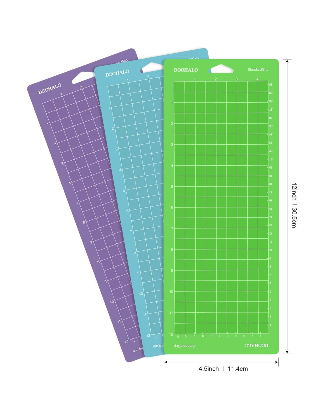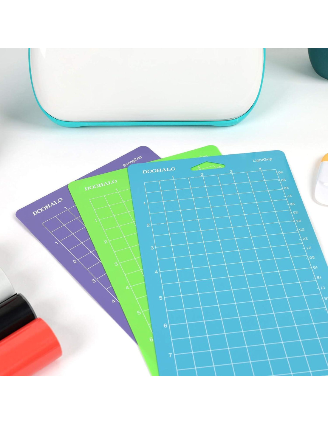 Las Alfombrillas de Corte DOOHALO han sido personalizadas para coincidir con los materiales de manualidades comúnmente utilizados. Cada una tiene el nivel justo de agarre para mantener su material firmemente en su lugar durante el corte y permite una fácil extracción del material. Las Alfombrillas de Corte DOOHALO son compatibles solo con Joy. La alfombrilla de corte de agarre ligero ha sido personalizada para materiales de peso ligero, incluyendo papel de impresora de oficina, Vellum, cartulina ligera y materiales de peso medio. La alfombrilla de agarre estándar es perfecta para una amplia gama de materiales de peso medio, incluyendo papel estampado, vinilo, transferencias de calor y cartulina. Transferencias de calor imprimibles, cartulina brillante, papel perlado, vellum, papel de impresora, transferencias de calor brillantes, papeles hechos a mano, hojas de washi, papel de manualidades. La alfombrilla de corte de agarre fuerte ofrece una superficie adhesiva fuerte perfecta para asegurar materiales de peso pesado. Siempre es perfecta para cartulina gruesa, cartulina brillante, material magnético, cartón, tela con refuerzo, etc. Las alfombrillas tienen el nivel justo de agarre para mantener sus materiales firmemente en su lugar durante y permiten una fácil extracción del material. Las alfombrillas de corte son geniales para creadores, quilters, estudiantes de arte y aficionados para realizar la mayoría de los proyectos de bricolaje. Diseño de cuadrícula de 1 pulgada para una alineación y colocación precisa del papel, el adhesivo mantiene temporalmente el medio en su lugar mientras se corta. Las alfombrillas de corte de reemplazo están hechas de PVC de alta calidad, la alfombrilla de corte adhesiva es lo suficientemente buena para satisfacer todo tipo de materiales. Por favor, mantenga la cubierta de película clara en la alfombrilla de corte cuando la almacene para mantener la pegajosidad de la alfombrilla de corte libre de restos y polvo.