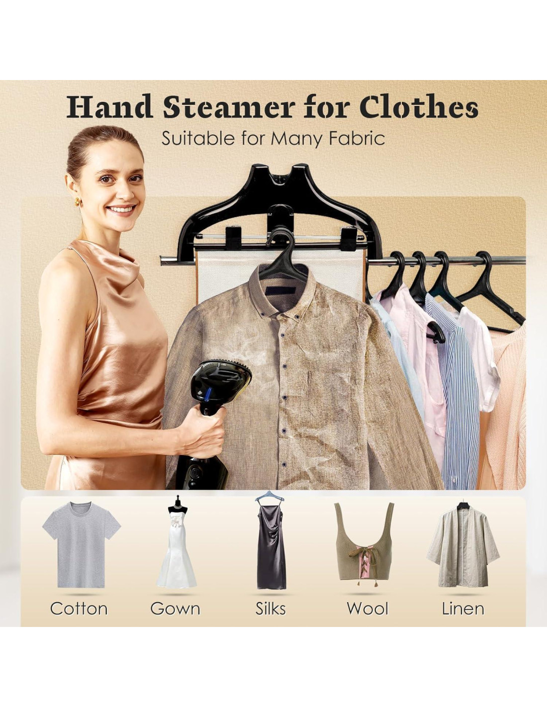 - Vapor Potente de 1800W, Suave con un Solo Paso: Nuestro vaporizador de ropa cuenta con una potente salida de 1800W que asegura un flujo constante de vapor fuerte. Ya sea abrigos pesados o cortinas con arrugas obstinadas, este vaporizador puede manejarlo todo sin esfuerzo. El intenso vapor penetra rápidamente las fibras de la tela, alisando profundamente las arrugas y con una salida de vapor estable, eliminando la necesidad de planchar repetidamente la misma área, lo que solía tomar media hora ahora se puede lograr en solo diez a quince minutos.