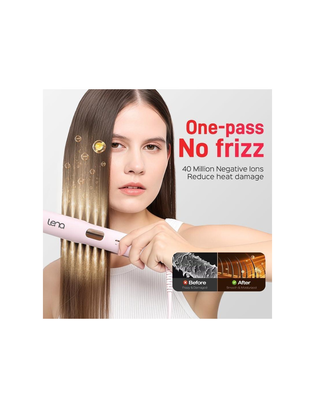 - Diseño Versátil 2-en-1 para Estilos Sin Fin: Cambia sin problemas entre looks lisos y ondulados con el ingenioso diseño 2-en-1 de LENA. Crea un cabello liso y brillante o hermosas ondas definidas, todo con una sola herramienta. Ya sea que estés en casa o en movimiento, logra estilos dignos de salón en cualquier momento y lugar.