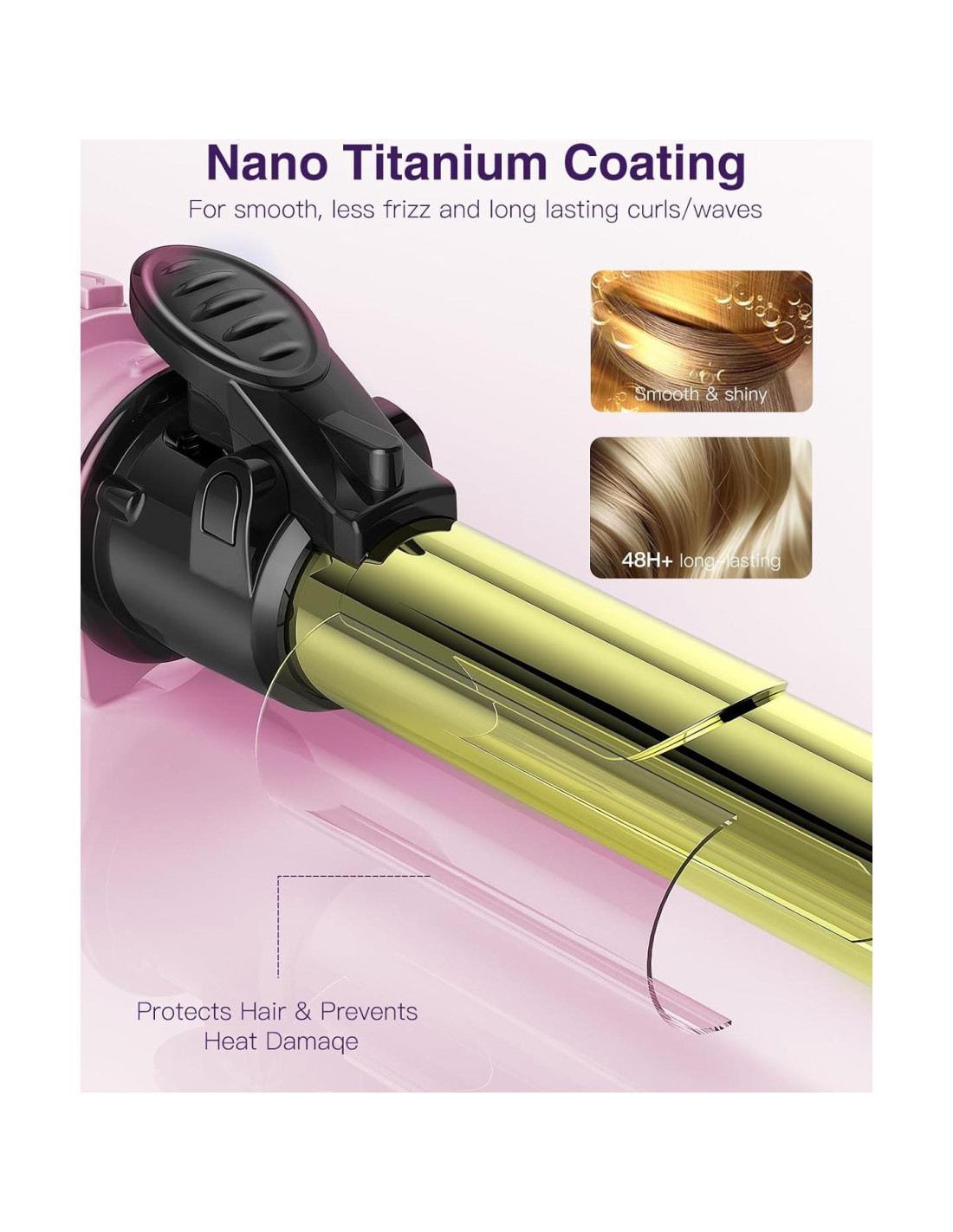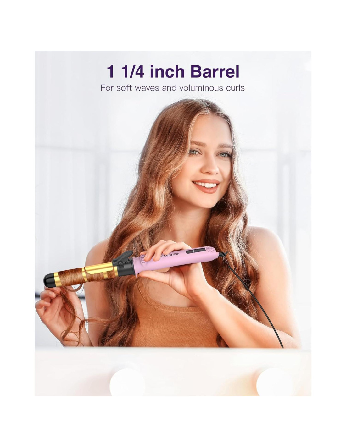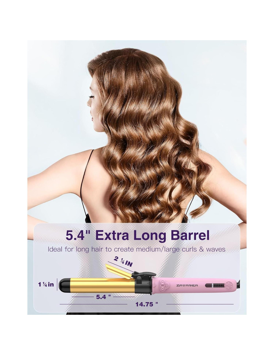 - Plancha de Rizado Profesional: Cuenta con un barril de extensión de titanio de 5.4" (13.72 cm) que se calienta rápidamente y mantiene una temperatura constante, asegurando que los rizos duren todo el día. El tamaño de 1 pulgada (2.54 cm) se adapta a varios estilos de rizos, mientras que el barril ultra largo de 5.4 pulgadas (13.72 cm) es adecuado para cabello de longitud hasta los hombros a media espalda.