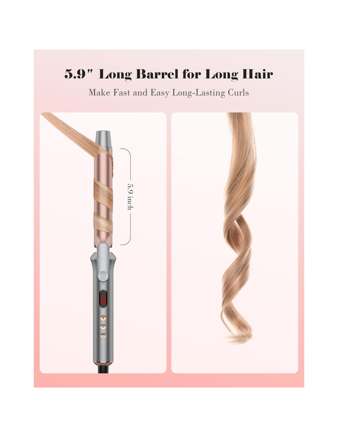 - Recubrimiento de Cerámica de Turmalina Nuestra plancha de rizar de cerámica ultra larga asegura una distribución uniforme del calor, reduciendo el tiempo de calentamiento. El barril de nuestra plancha de rizar de barril largo de 1 pulgada está recubierto con una doble capa de cerámica. Esto minimiza el daño al cabello, dejándolo más suave.