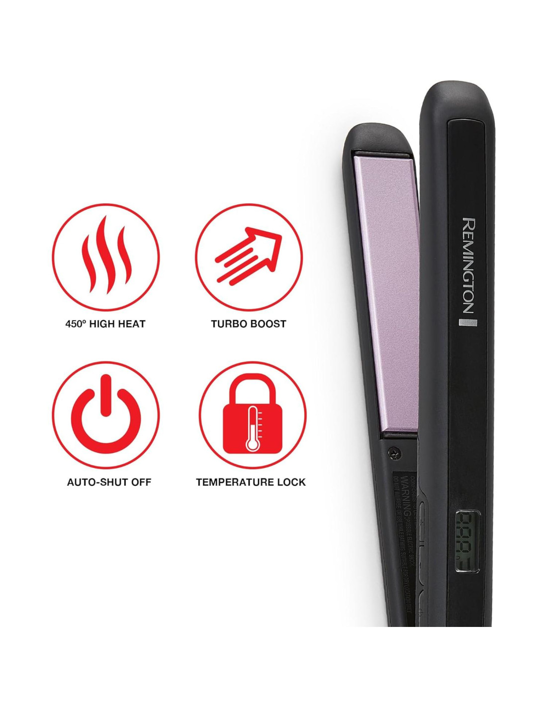 - 8 CONFIGURACIONES DE CALOR PARA TODOS LOS TIPOS DE CABELLO: Elige entre 8 configuraciones digitales de hasta 232C con bloqueo de temperatura, impulso turbo y apagado automático. La LCD parpadea durante el calentamiento, luego muestra de 1 a 3 barras cuando está lista para un estilizado rápido y personalizado sobre la marcha.