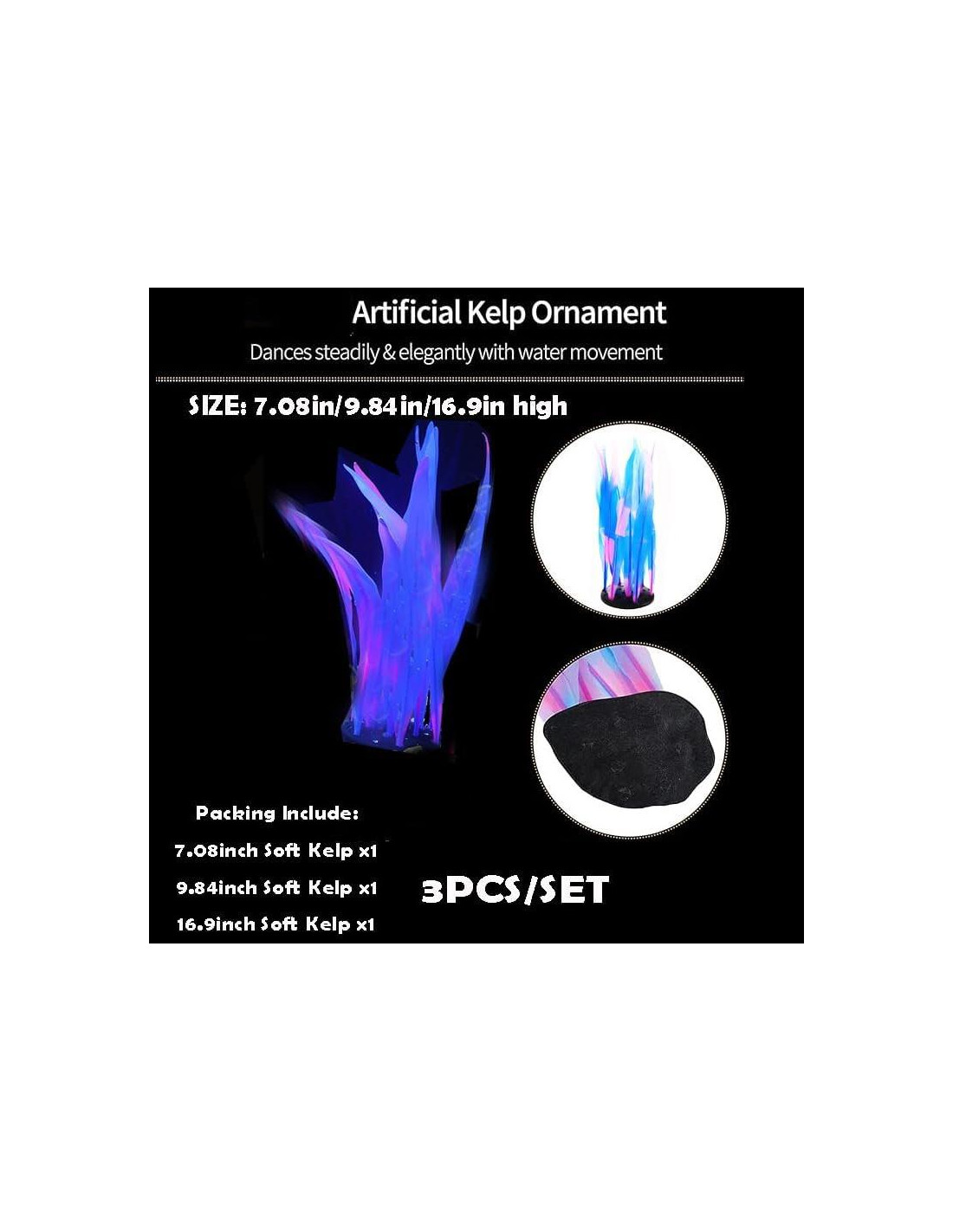 - [Lo que obtienes] Algas artificiales de silicona suave que brillan para la decoración del tanque de peces. Ofrecemos plantas de agua artificial de 5 colores: azul, rojo oscuro, verde, naranja y rosa, utilizadas para una variedad de paisajismos de acuarios. El empaque incluye: 3 piezas de plantas de acuario azules. Dimensiones: Altura 1 pieza x 18cm (7.08in), 1 pieza x 25cm (9.84in), 1 pieza x 43cm (16.9in).