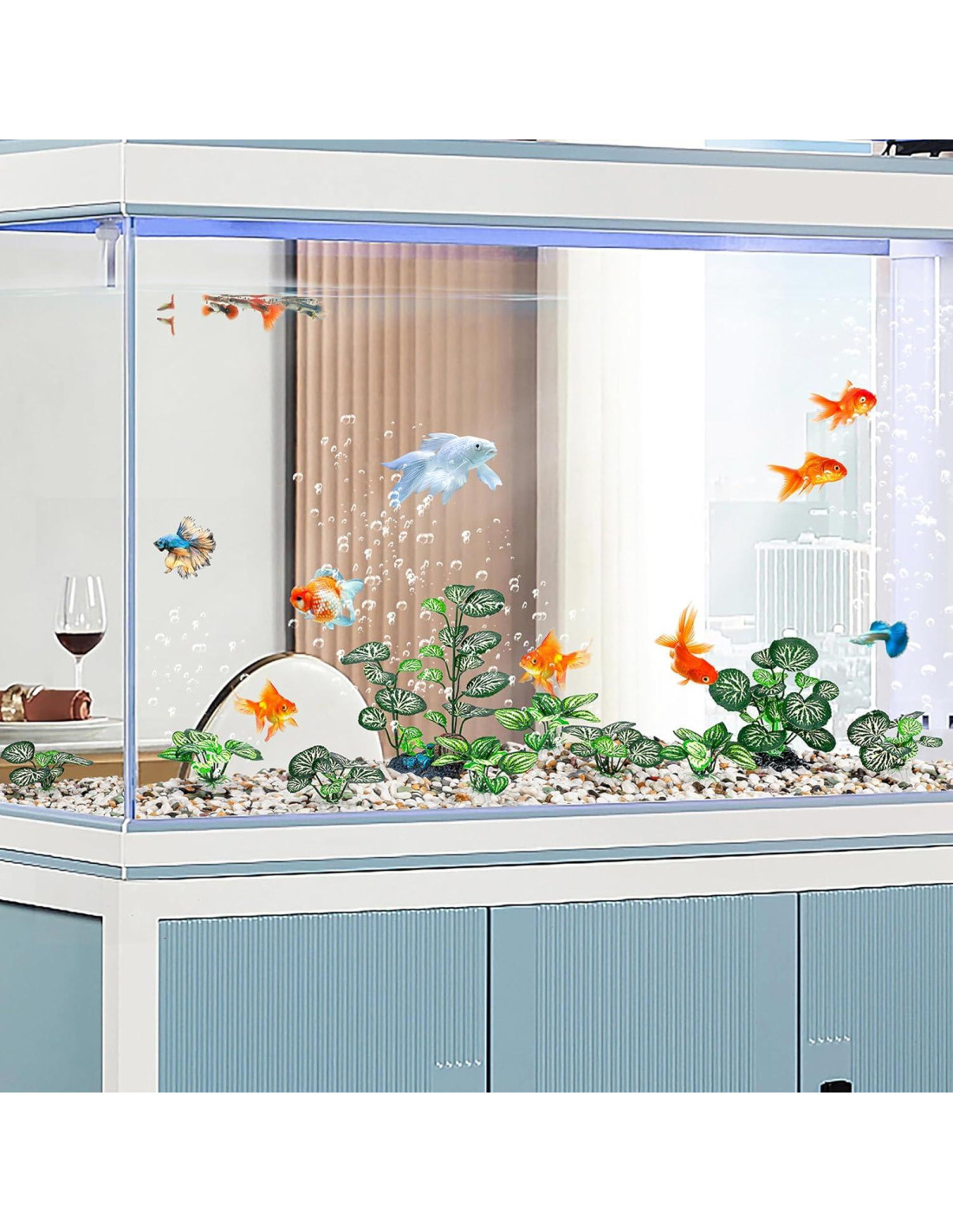 - Materiales Premium: Las plantas de acuario están hechas de seda, plástico y cerámica. Son seguras, suaves y confiables, no contaminarán el agua y el color no se desvanecerá