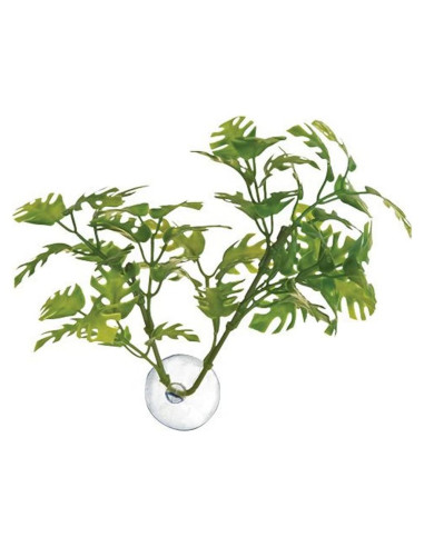 Planta Plástica de Hoja de Ventana de aspecto natural para acuarios y peceras de Betta. Agrega un toque natural a tu pecera de Betta o nano tanque. Proporciona refugio para esconderse y descansar. Incluye ventosa para fácil anclaje/adhesión.