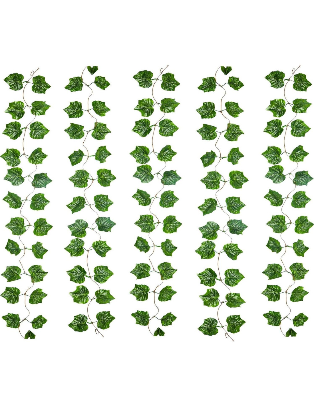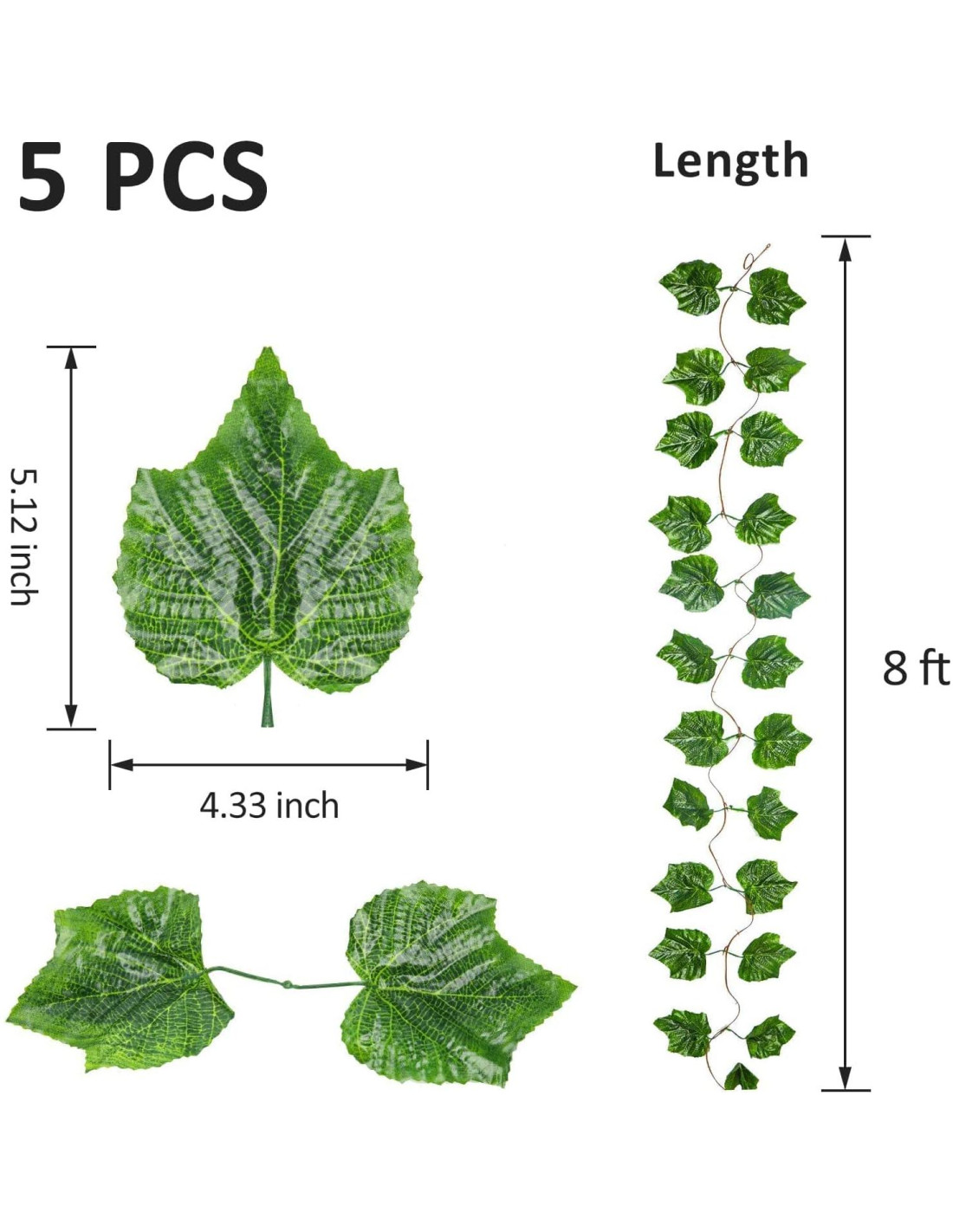 Meiliy 8 pies (243,84 cm) 5 piezas Plantas de Hiedra Artificiales Follaje Hojas de Uva Simulación Flores Guirnalda y 5 piezas de Hojas de Vid de Uva Artificiales Follaje Simulación Frutas para Decoración de Hogar, Habitación, Jardín, Boda, Exterior