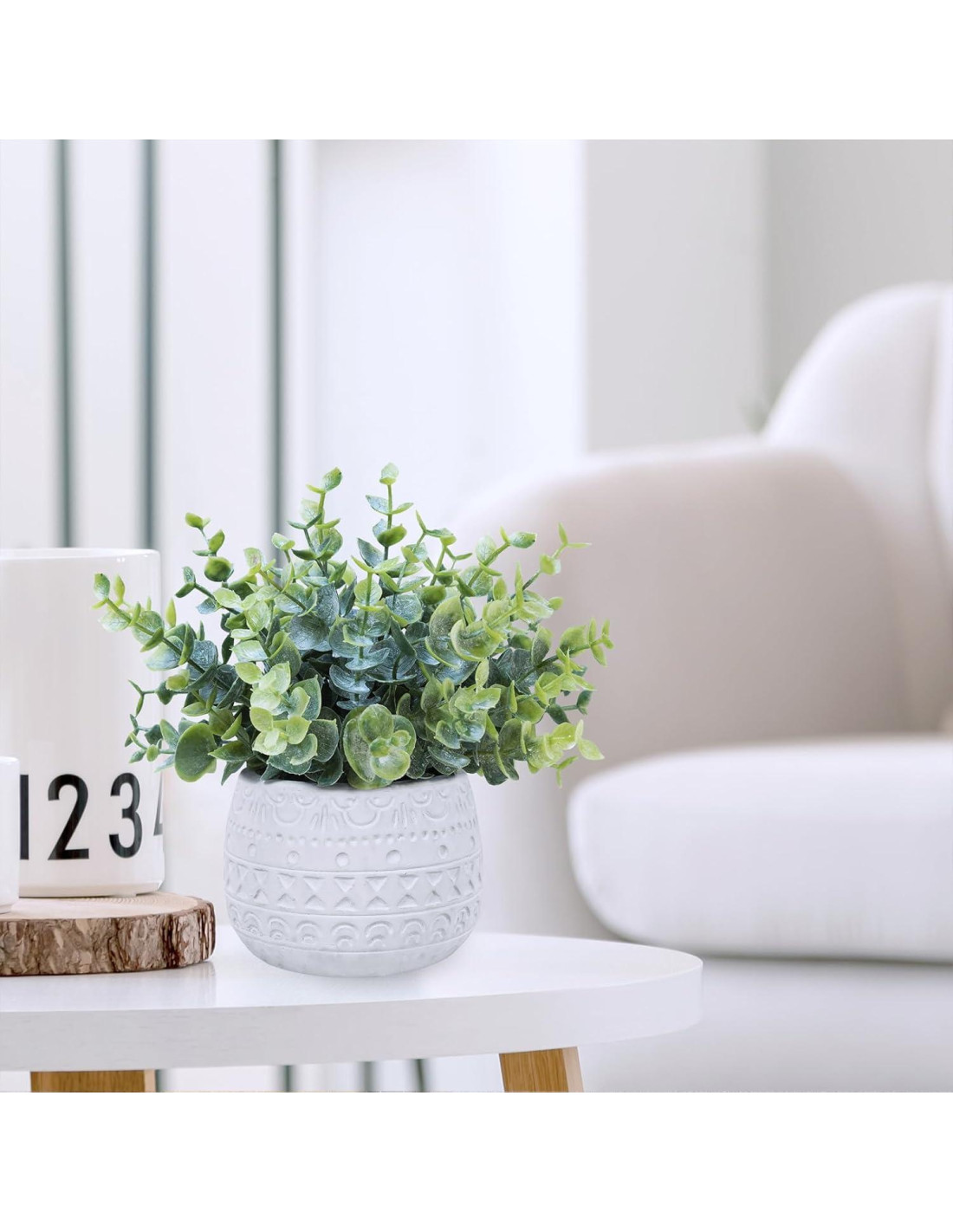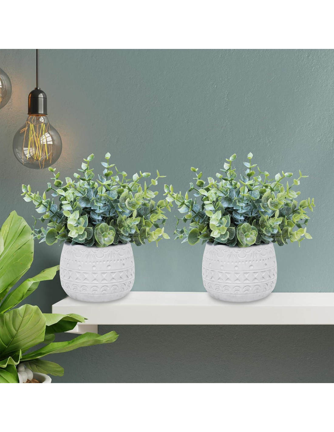 - Vibrante y Exuberante: Este conjunto de 2 plantas de eucalipto artificial en macetas muestra hojas verdes de dos tonos realistas con una superficie polvorienta, en una forma llena y exuberante, plantadas en las macetas de concreto blanquecino con piedras para un aspecto chic. La sofisticada maceta de concreto presenta un patrón geométrico en relieve que puede resaltar las plantas verdes artificiales en su interior y complementar cualquier estilo decorativo.