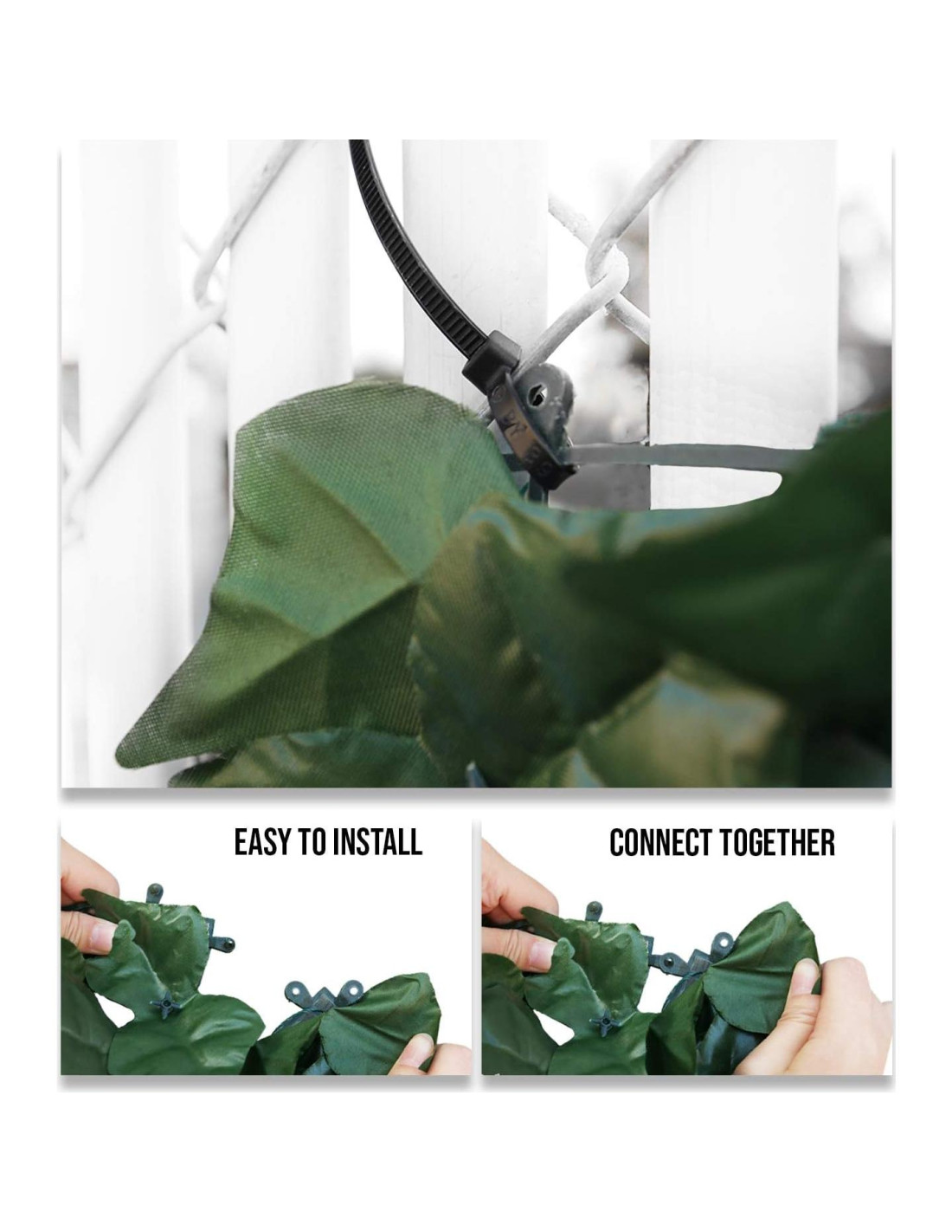 Nuestra pantalla de cerca de hiedra falsa con hojas de hiedra de aspecto realista que ayudan a proporcionar esa privacidad adicional mientras estás al aire libre tomando el sol o relajándote en tu propio patio trasero. A prueba de UV, ligera, se puede enjuagar con una manguera de jardín, hecha de hojas de poliéster y respaldo de plástico, no libera productos químicos tóxicos, No requiere riego, No se necesita mantenimiento. Nuestra pantalla de cerca de hiedra falsa es la combinación perfecta con plantas decorativas artificiales para crear una atmósfera romántica. Es adecuada para bodas, cumpleaños, día de San Valentín, aniversarios, Navidad, decoración de fiestas. Perfecta para convertir paredes, cercas y cualquier cosa a la que puedas aplicarla creando un aspecto natural exuberante suave al tacto pero duradera hecha de polietileno de alta densidad super fuerte y resistente. Perfecta para privacidad o simplemente para embellecer tu área interior o exterior. Dar forma y diseñar es un simple corte de unas tijeras para ajustarse al tamaño y forma que desees crear, y las piezas se conectan con conectores entrelazados para facilitar la instalación.