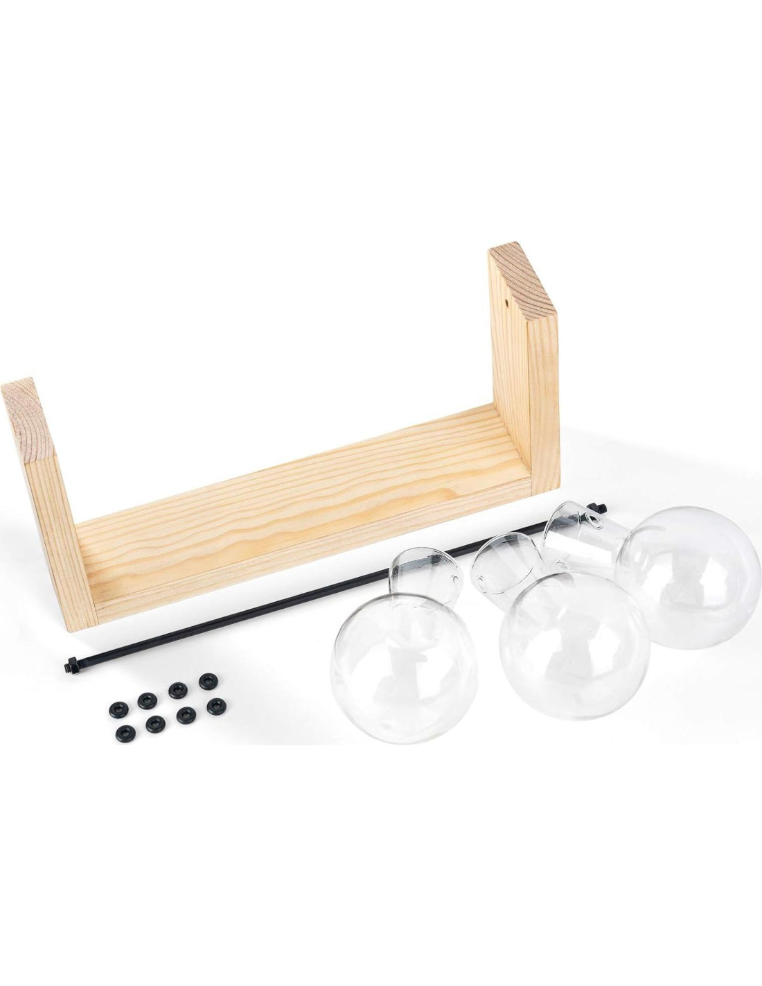 - El Paquete Incluye: 1 x marco de madera, 3 x jarrón en forma de bombilla, 1 x soporte giratorio de metal, 8 x tapones fijos de goma, 3 x tuercas de tornillo, 1 x bolsa de hardware para montaje en la pared, 1 x cepillo de limpieza y 1 x manual. ¡No se incluyen plantas ni accesorios en este artículo! Mkono es una marca registrada y nuestro producto es de fabricación profesional y venta exclusiva.