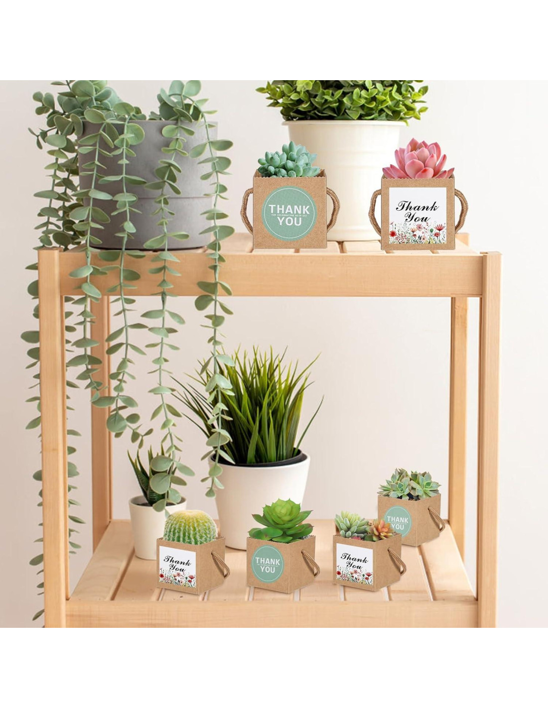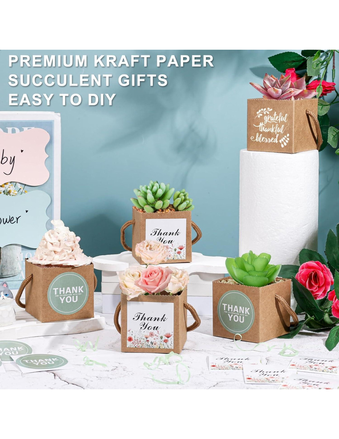 KesaPlan 50 PCS Bolsas de Envoltura de Suculentas con 100 PCS Etiquetas de Agradecimiento Cuadradas y Redondas, Pequeña Caja de Regalo de Papel Kraft para Macetas de 2.36 Pulgadas, Favoritos de Fiesta de Boda para Invitados Mini Cajas de Suculentas para Boda Baby Shower No Incluye Plantas